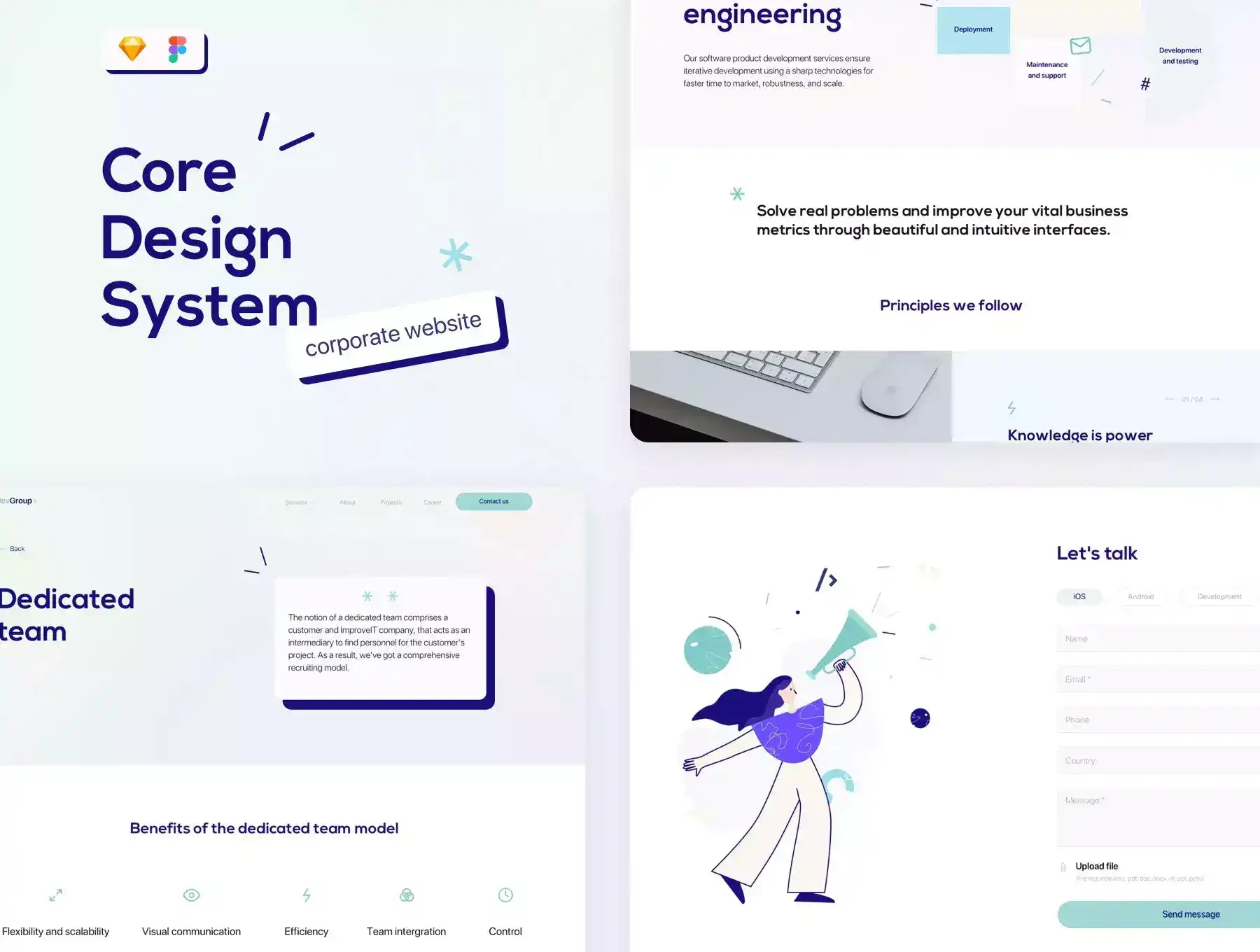 Core is available for Sketch and Figma. Download files and create awesome website.