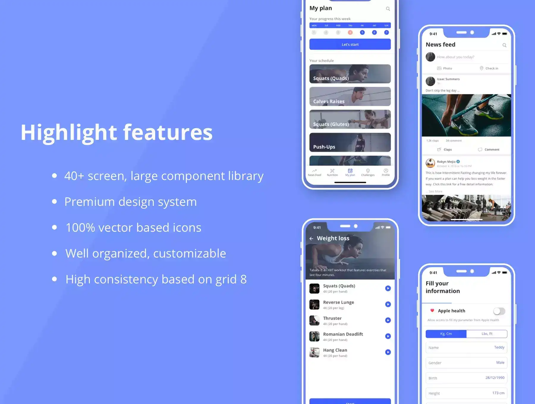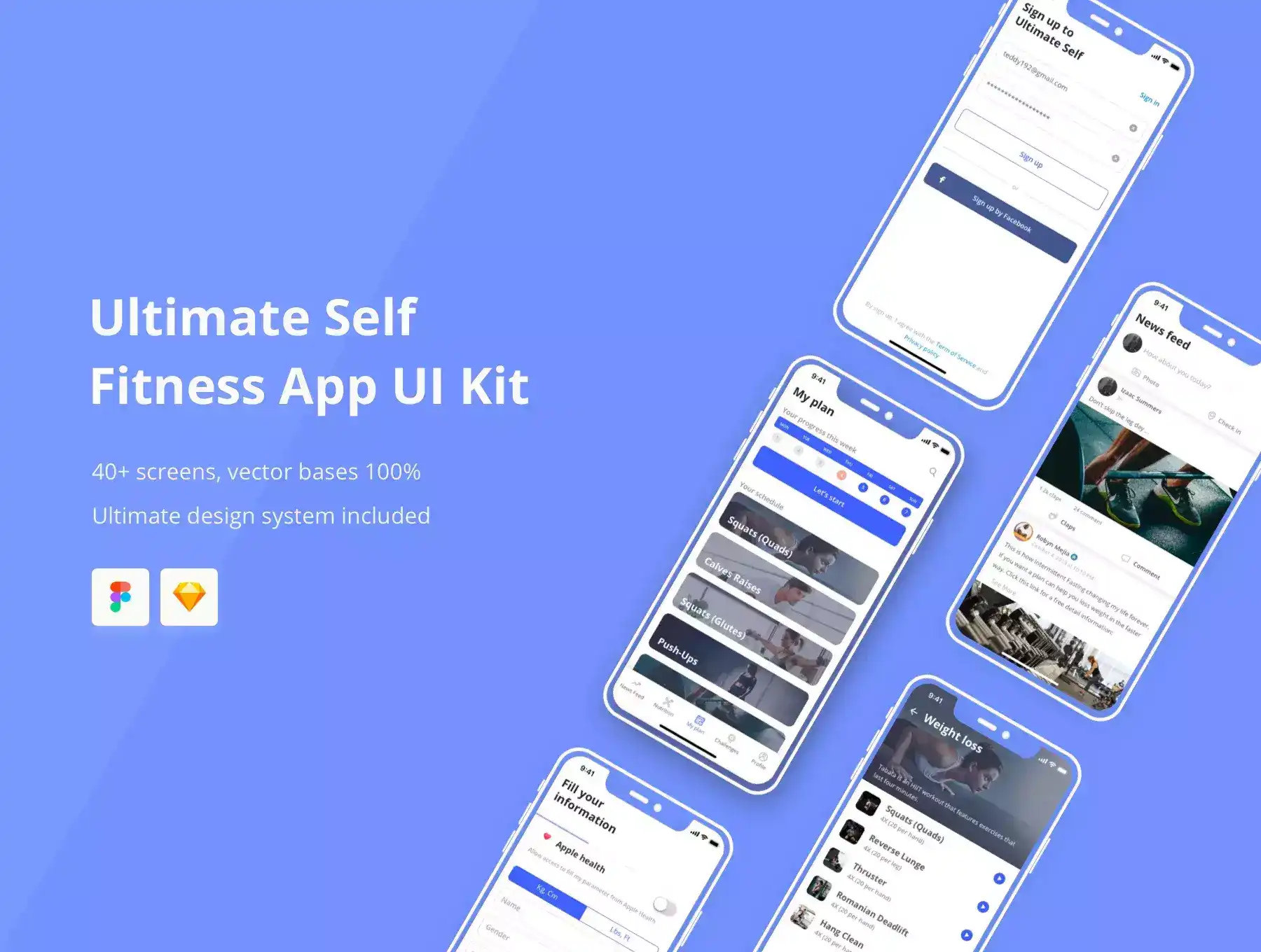 Ultimate Self is a Fitness UI Kit for mobile app, which is optimized for iPhone 11 Pro resolution. This template is including 40+ screen with 200+ components, styles and appearances. It is so easy to work with and save a lot of time in case you want to update the design.