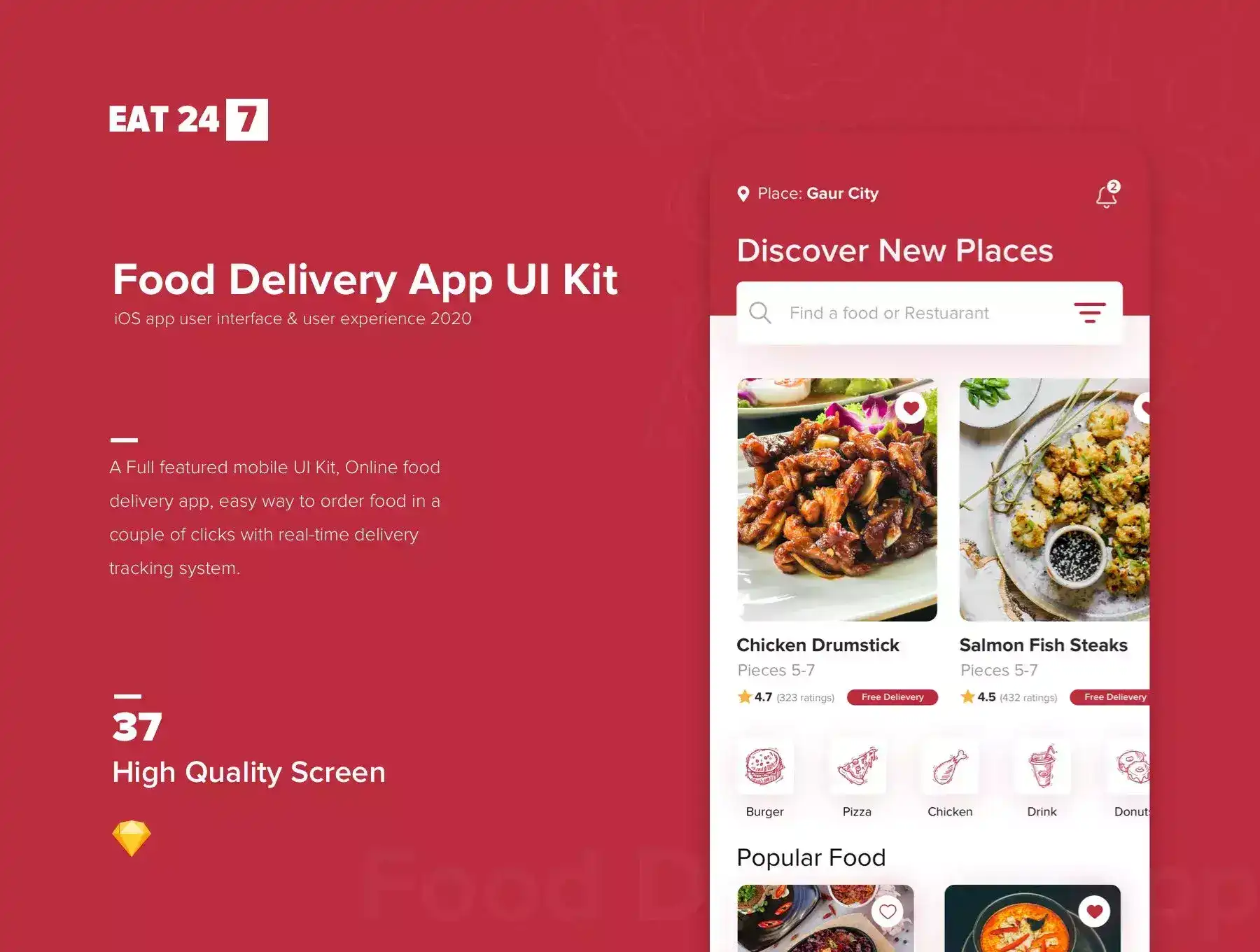 Behance: https://www.behance.net/gallery/98755859/EAT-247-App-UIUX-Design-case-study-with-UI-Kit