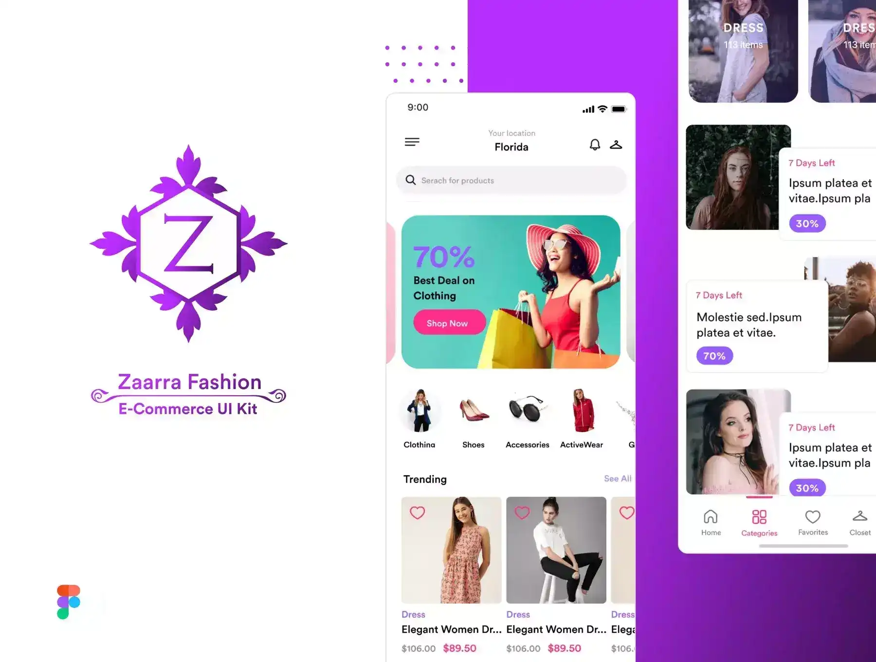 Zaara is a clean & detailed Fashion E-commerce Mobile App UI kit designed and built with conversion-oriented UX.