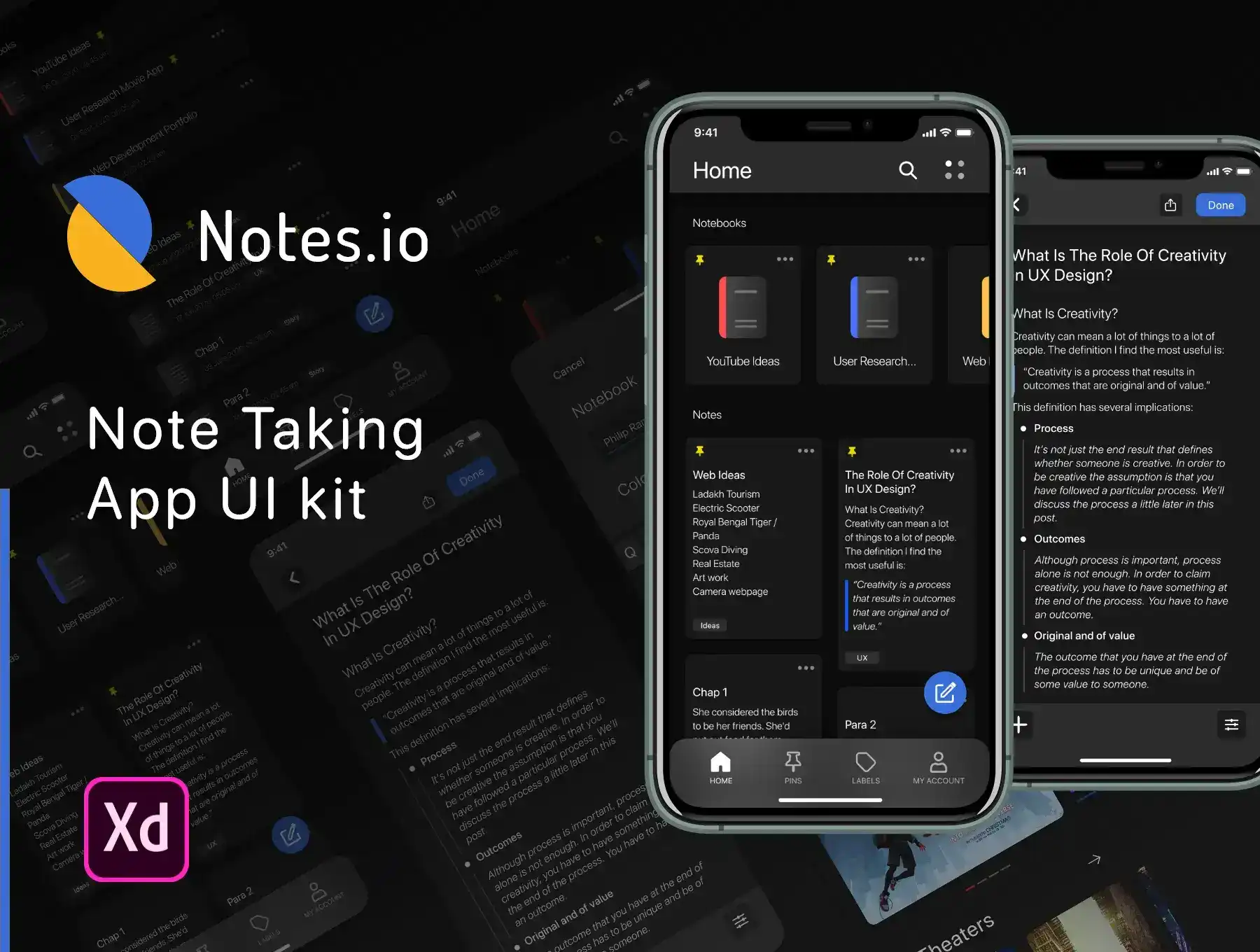 Notes.io is high quality and well organized notes taking App UI Kit. You can create note taking ios/android app with great user-experience using Notes.io App UI Kit. The template is specially designed keeping the needs of users in mind. This XD file is fully layered and is well organized by layer name. Free Sf Pro font used. Icons are created with precision and keeping users in mind.