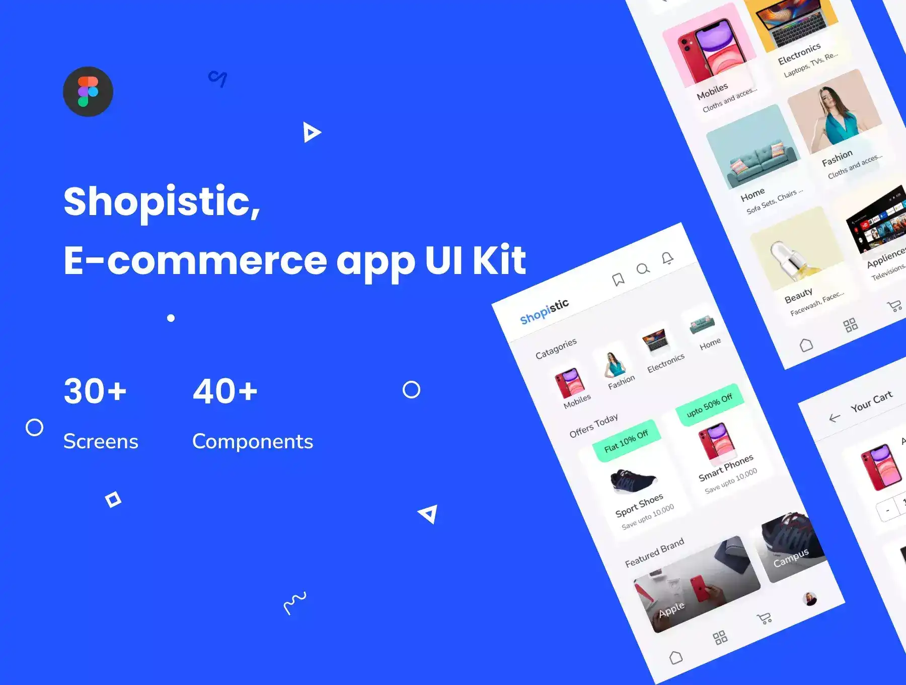 This is Shopistic, an E-commerce mobile app UI Kit designed by Designsalley, with 30+ neatly designed screens and 40+ Components.
