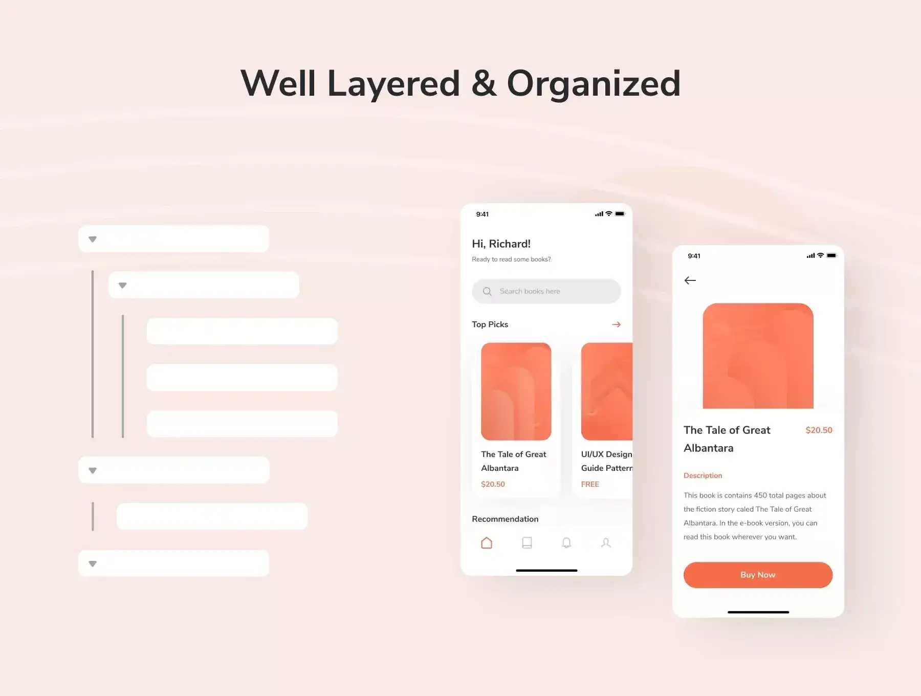 well layered and organized, responsive resize, global color and text styles, and with free fonts family from Google Fonts (Nunito Sans).