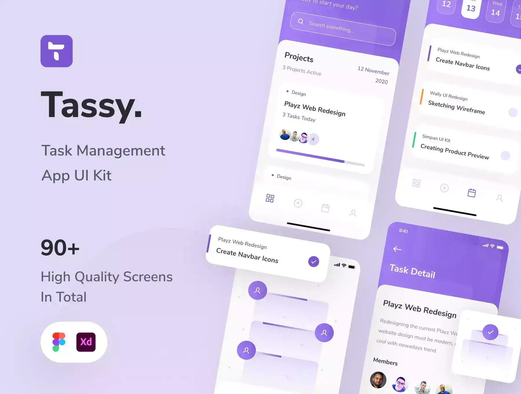 Tassy is a task management app UI Kit with a clean and sleek style contains 90+ high-quality screens in total and responsive resize features for iOS with iPhone X screen size (375px X 812px) ready to use and ready to kickstart your design process.