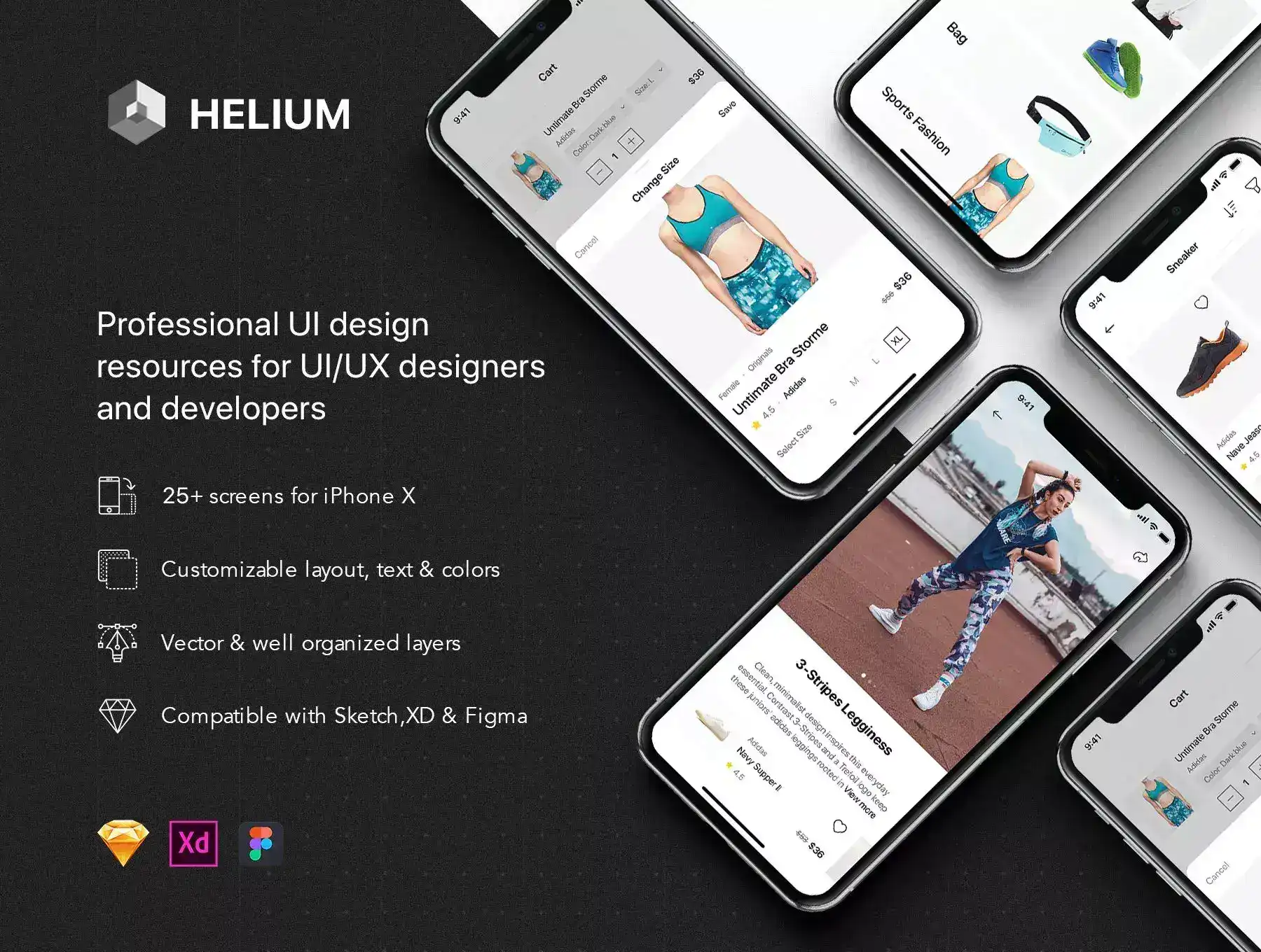 Helium UI Kit includes 25+ app screens with trendy useful components that you can use for inspiration and speed up your design workflow. This UI Kit is a brilliant solution for a Fashion online and E-commerce app. All layers and symbols are neatly grouped, named and organized. This kit is 100% compatible with iOS & Android systems. The file includes all recent features such as Symbols, Overrides, Resize Options, Text and Layer Styles.