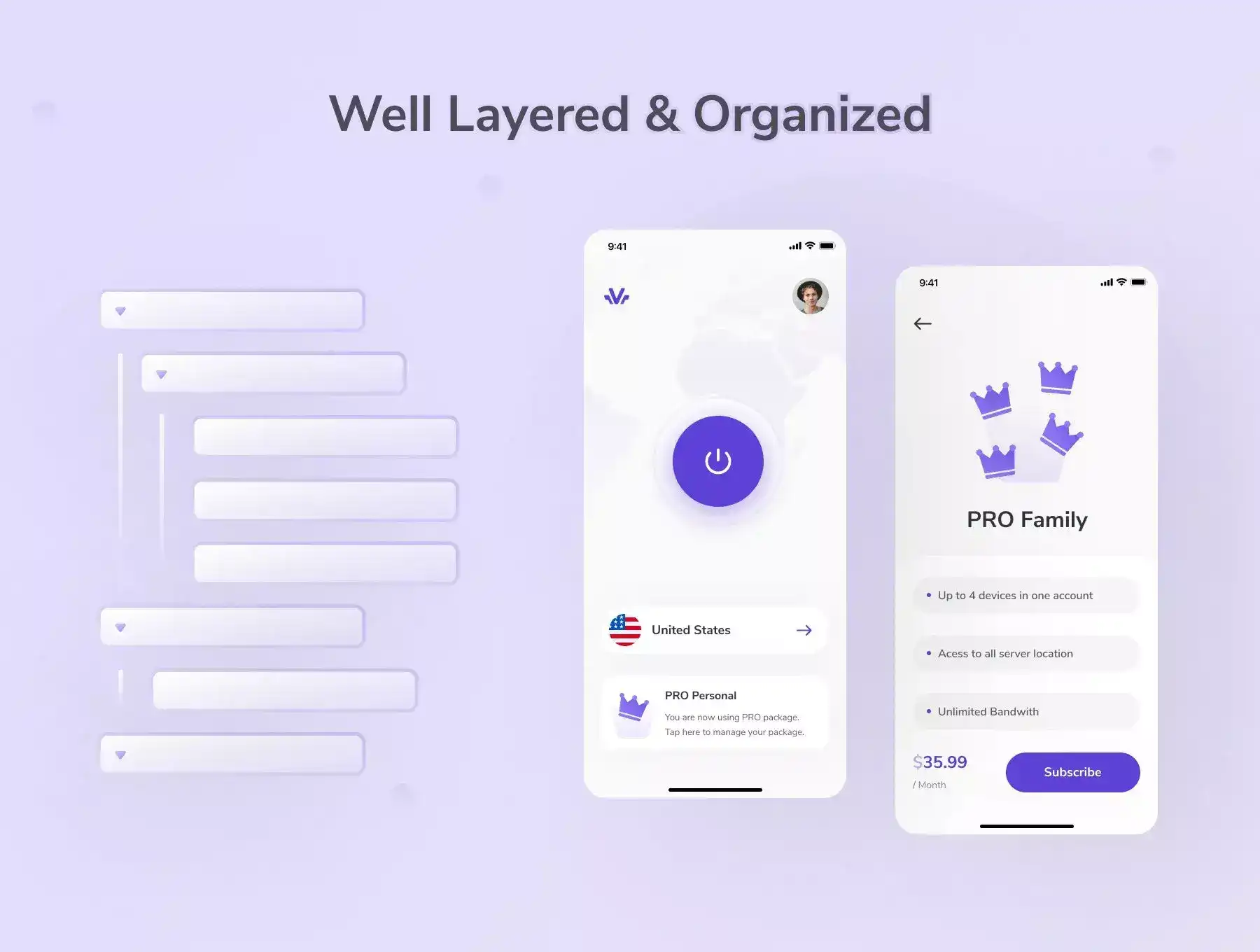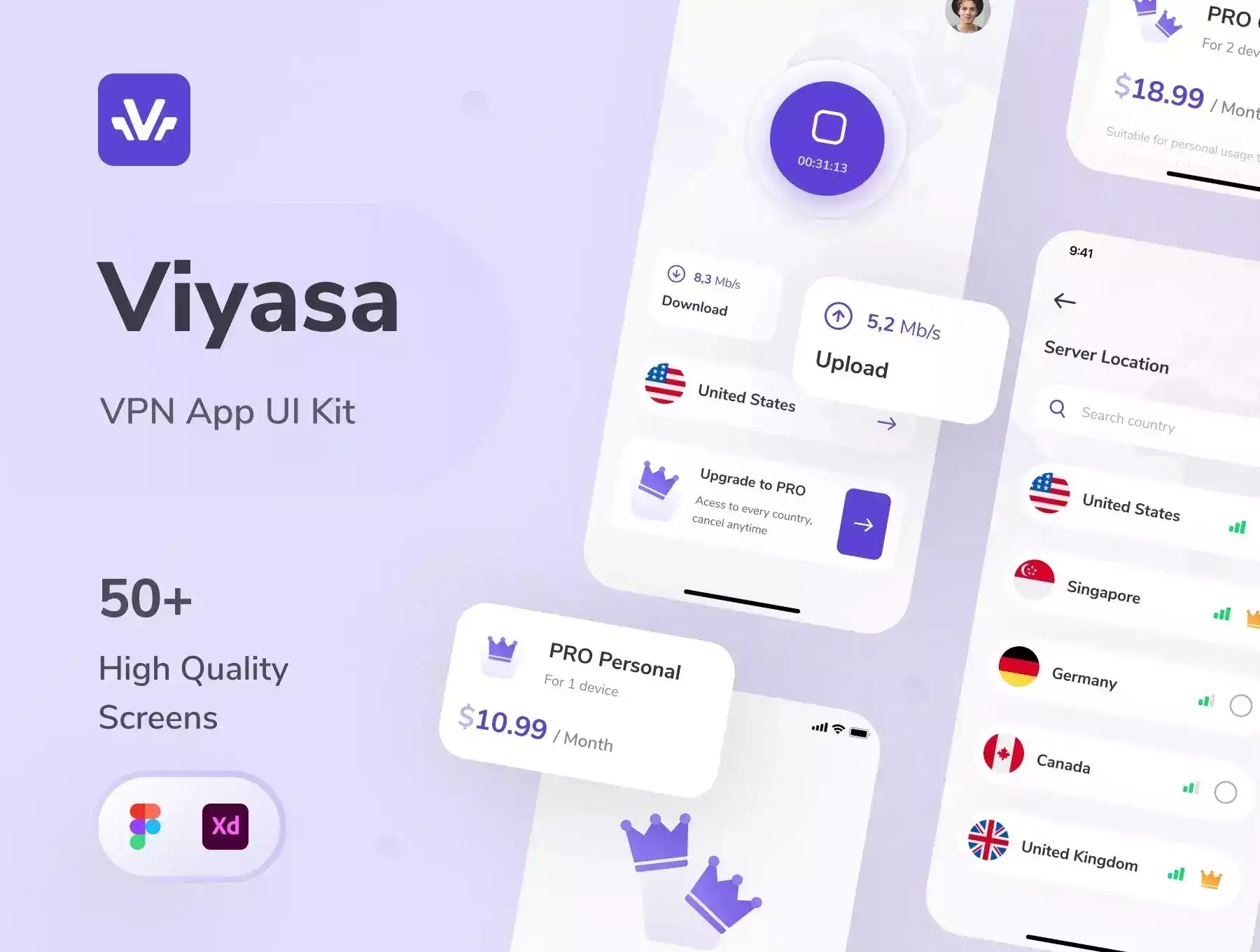 Viyasa is a VPN app UI Kit with a clean and sleek style that contains 50+ high-quality screens and responsive resize features for iOS with iPhone X screen size (375px X 812px) ready to use and ready to kickstart your design process.