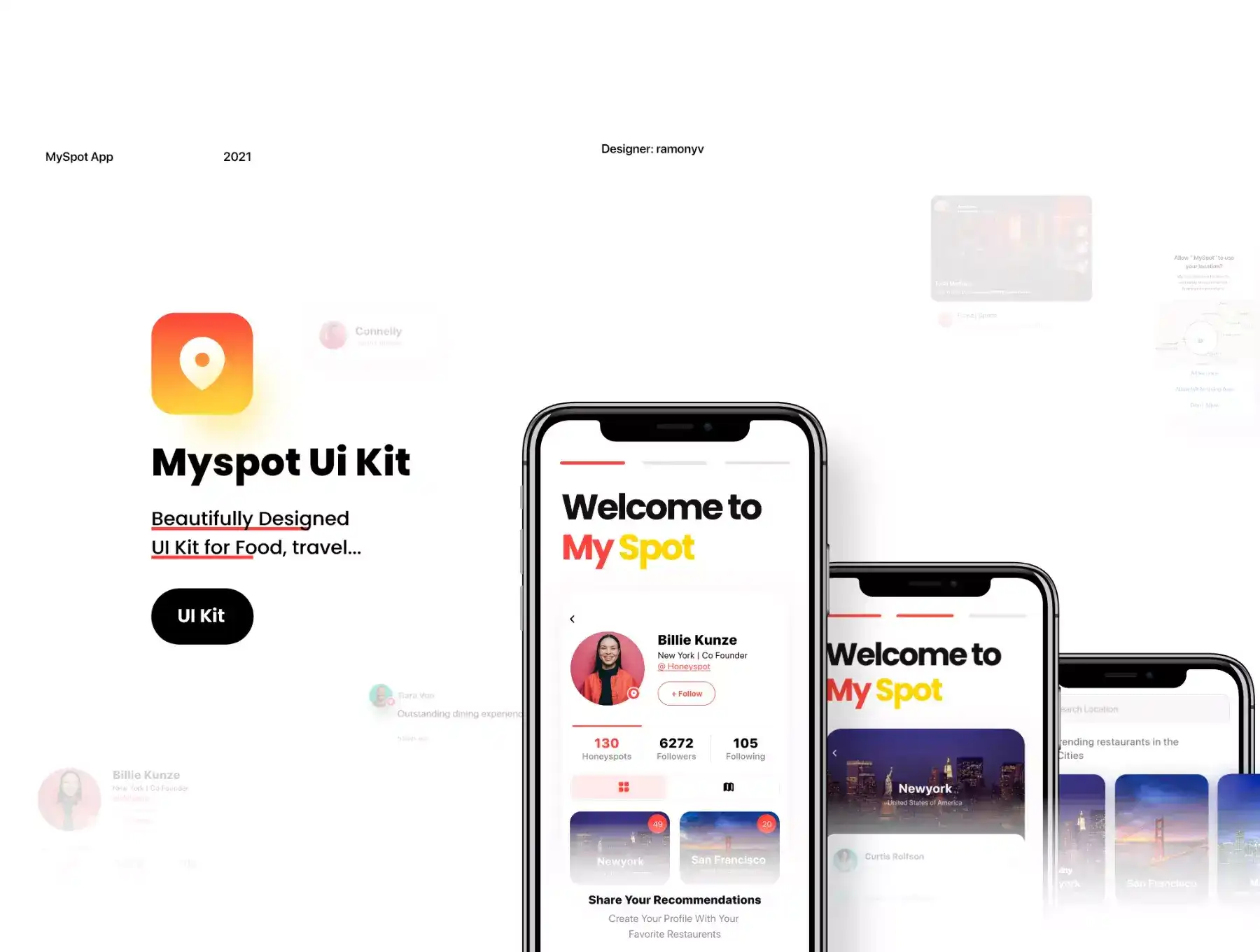 My Spot is an iOS and Android UI Kit made to help to discover restaurants based on your social circle create effective hotels, experiences, restaurant, bar and cafe designs faster and easier with carefully crafted elements of mobile UI Kit for Figma and adobe XD. 22 screens are strongly consistent throughout the flow. All templates look flawless on every phone.