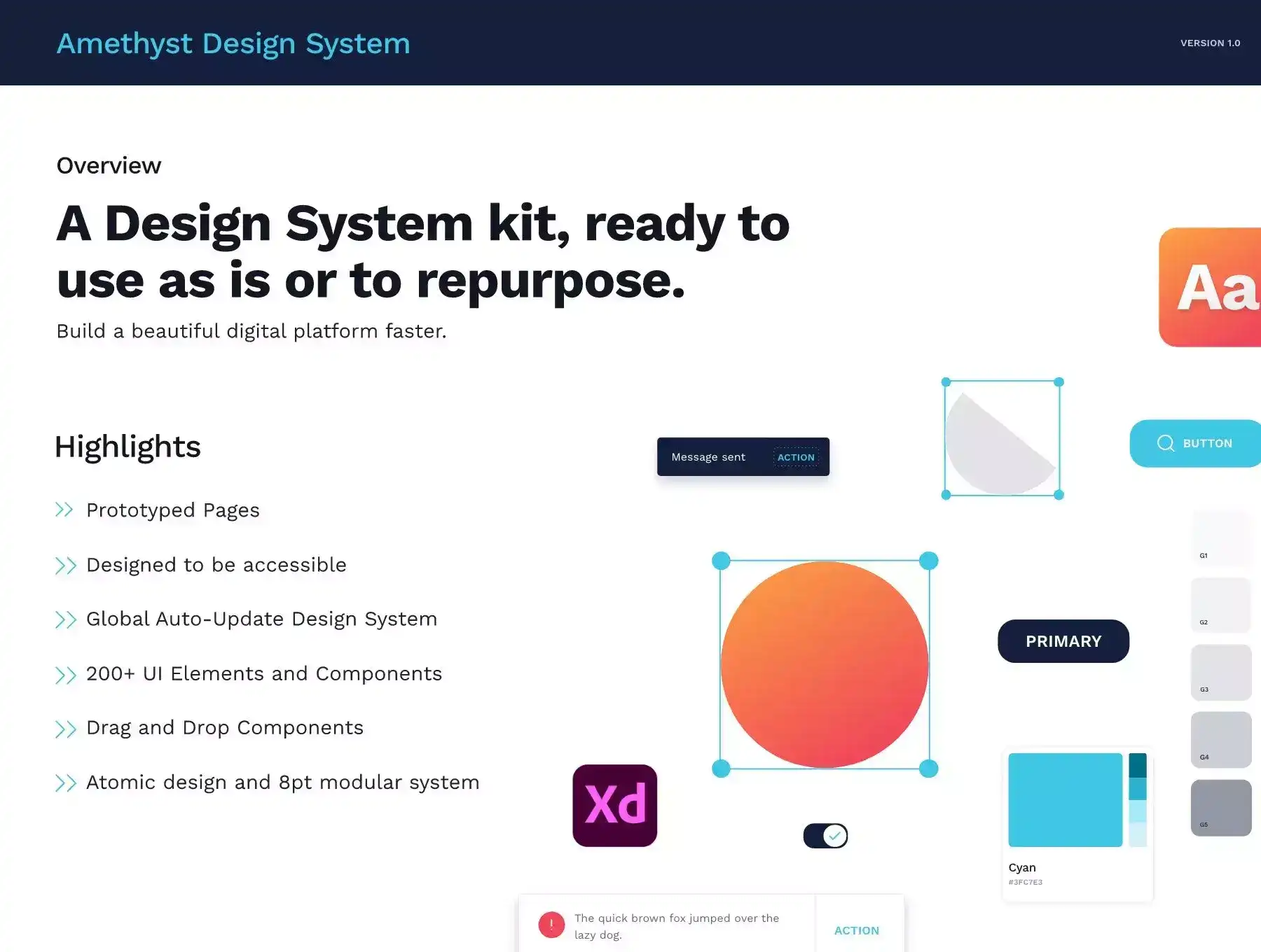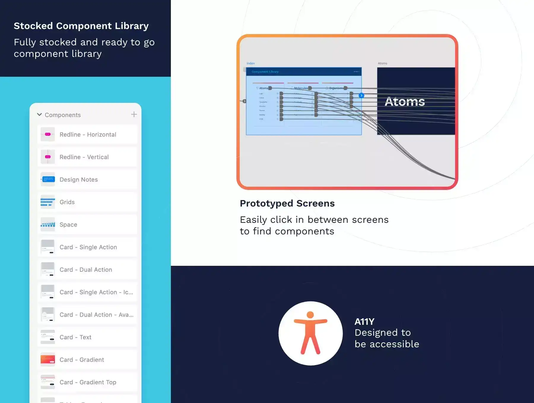 Finish projects faster with this presentation ready Design System kit. Over 80+ drag and drop components and UI elements to use or re-purpose.