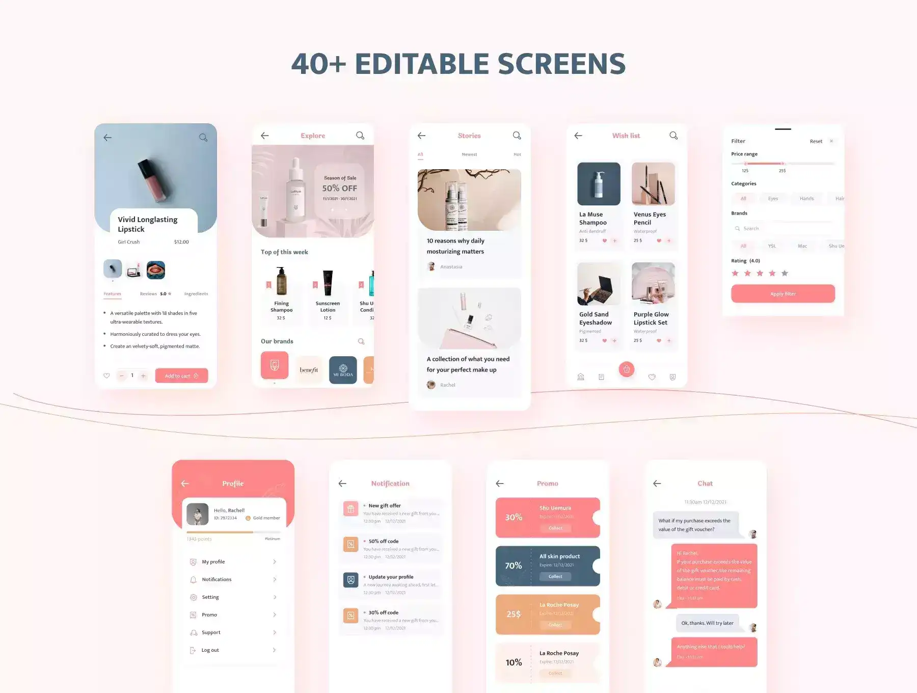 A muse in life is the main concept for this UI Kit, which contains everything you need to speed up your workflow. Creating a beautiful look for your cosmetic brand would certainly be a walk in the park!
