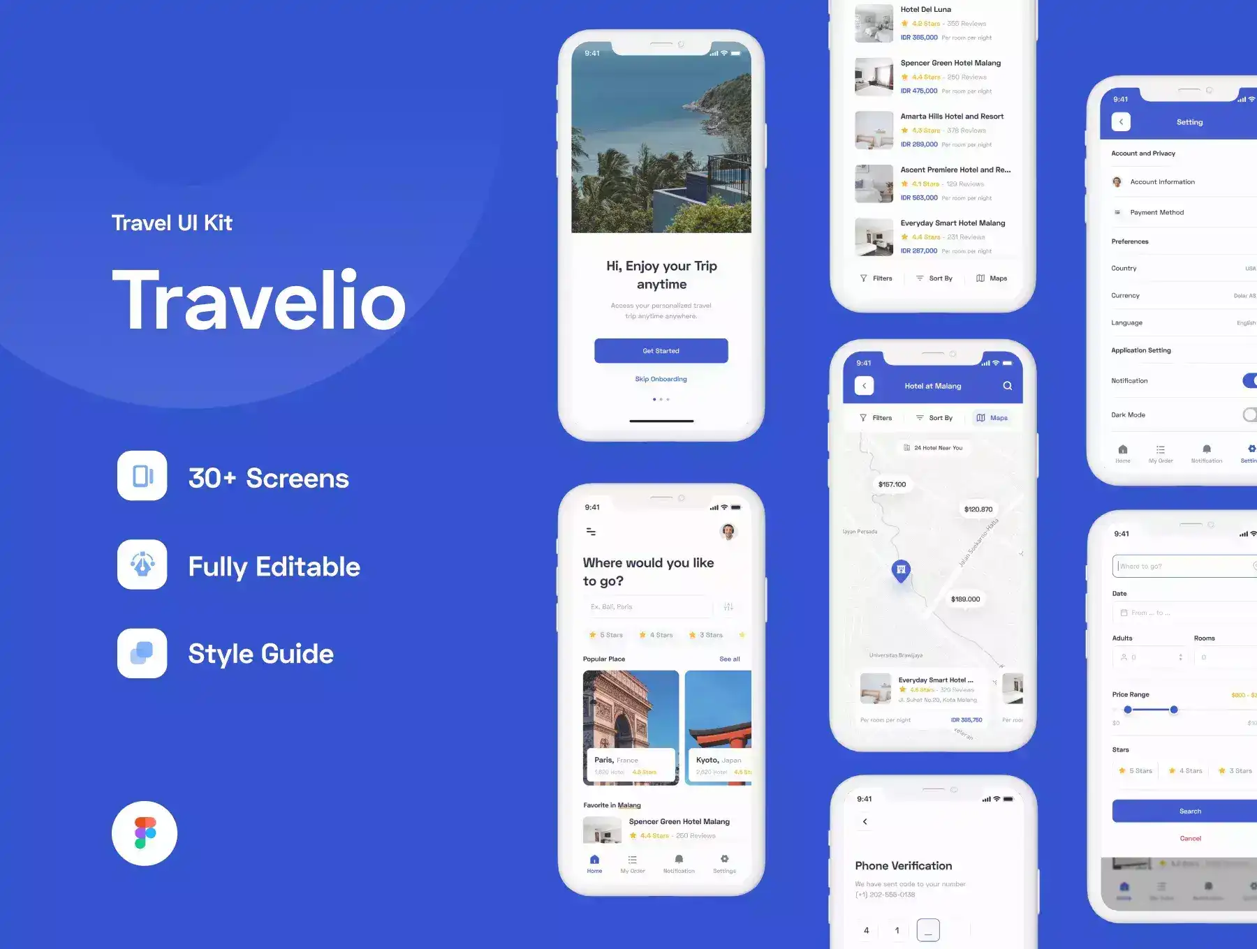 Travelio is a Travel & Booking iOS app UI Kit consisting of 30+ pixel-perfect screens.