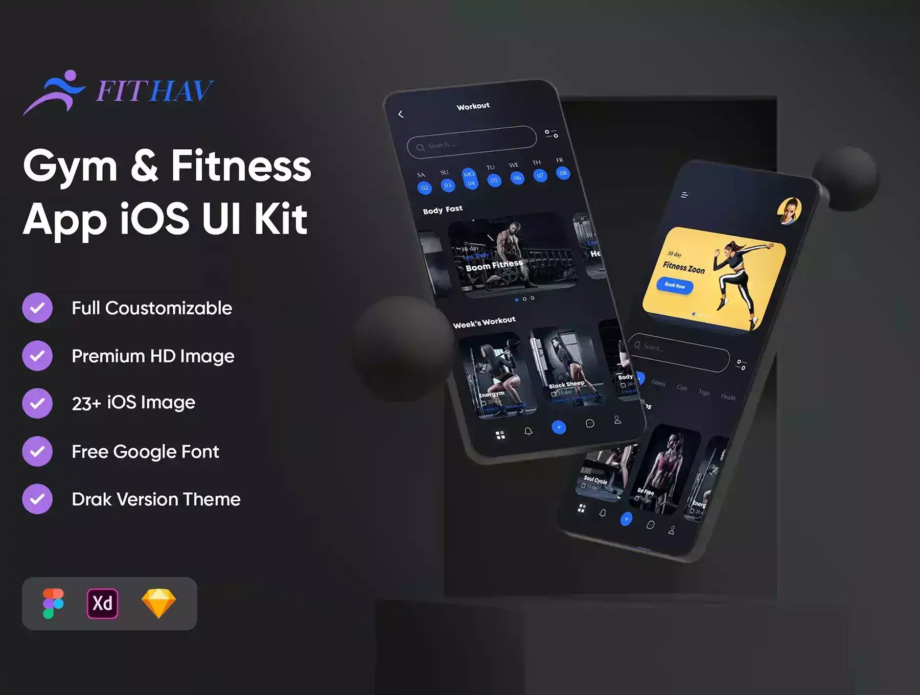 FITHAV - is an application for Ios & Android fitness app. The idea of this application was to create a fitness & gym app design. Application helps to generate a workout for any goal, choose a fitness program you need and check your physical activity.