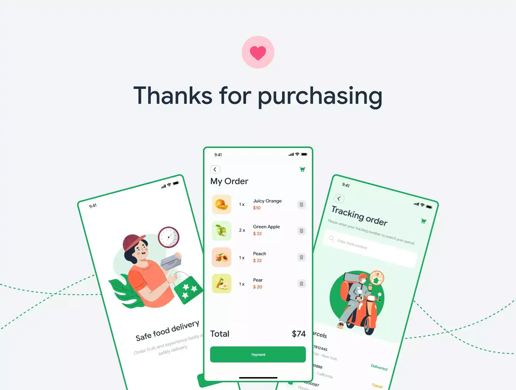 Fruitee is a Fresh Fruit Shopping App UI KIT Design, this app help user to find the most fresh fruit in all store. User can also get the tracking order and find the nearest store.