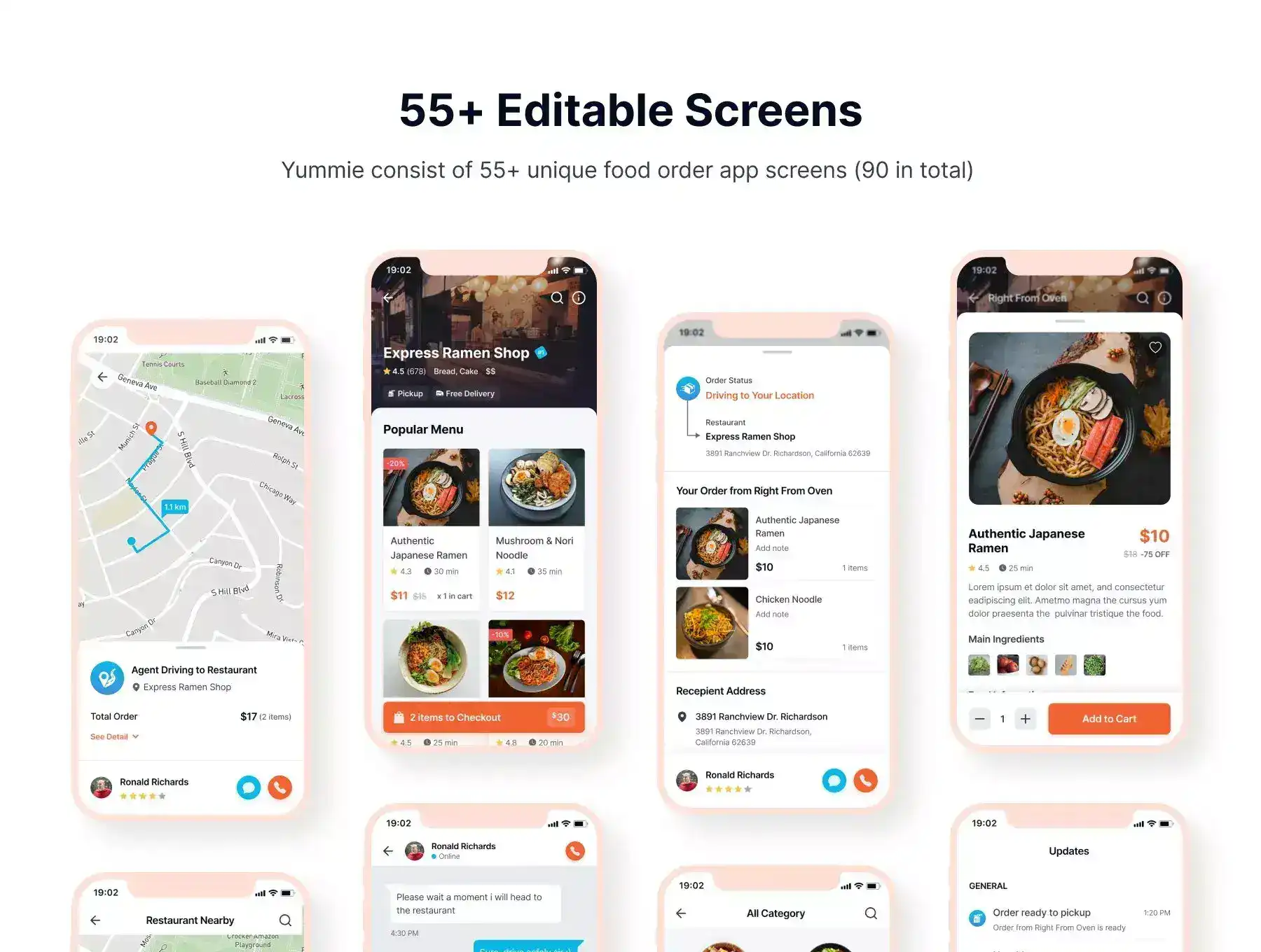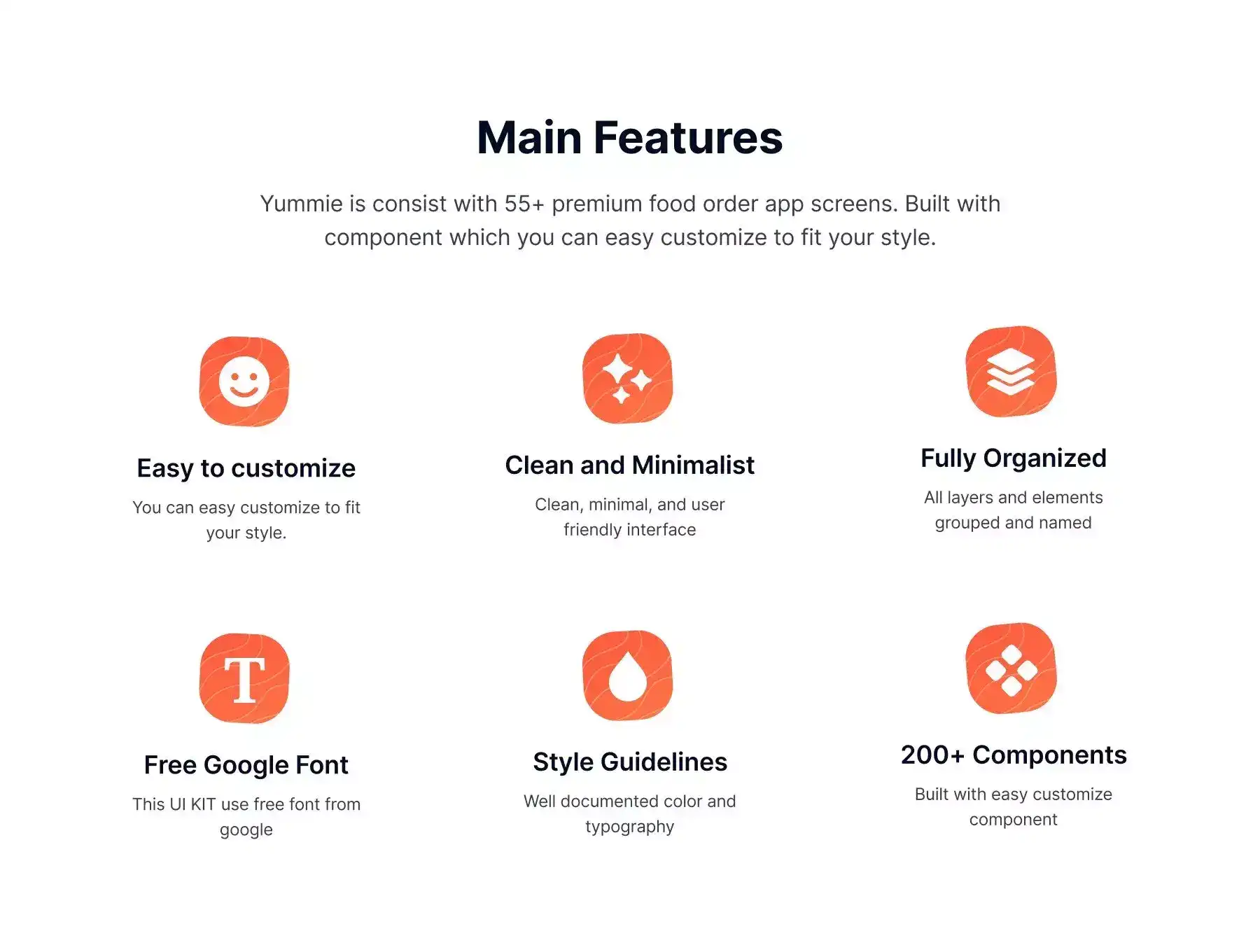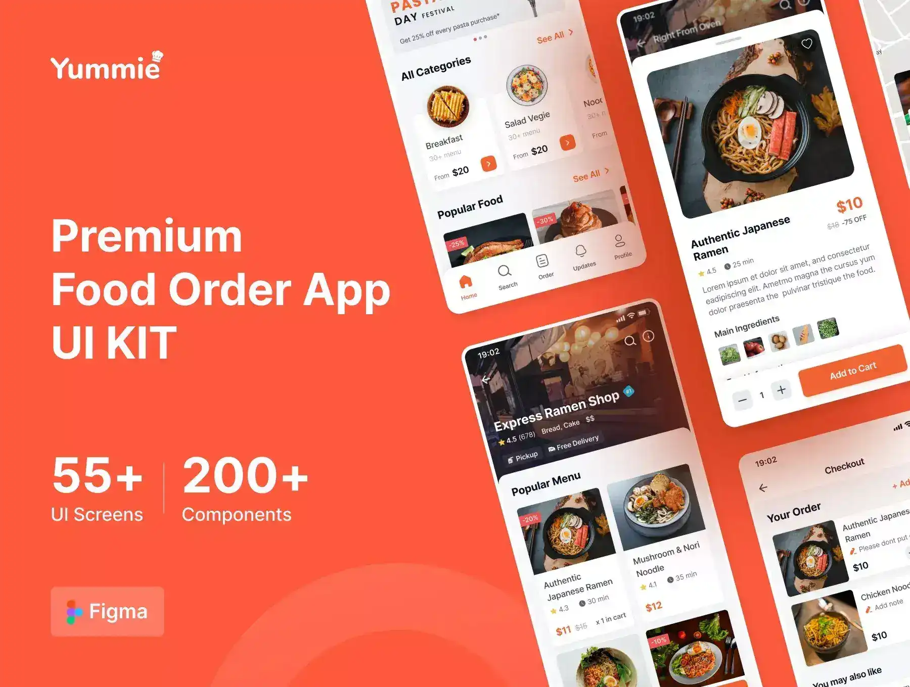 Yummie is premium food order app UI Kit design which consist 55+ unique screens (90 in total). Built with component which you can easy customize to fit your design style.
