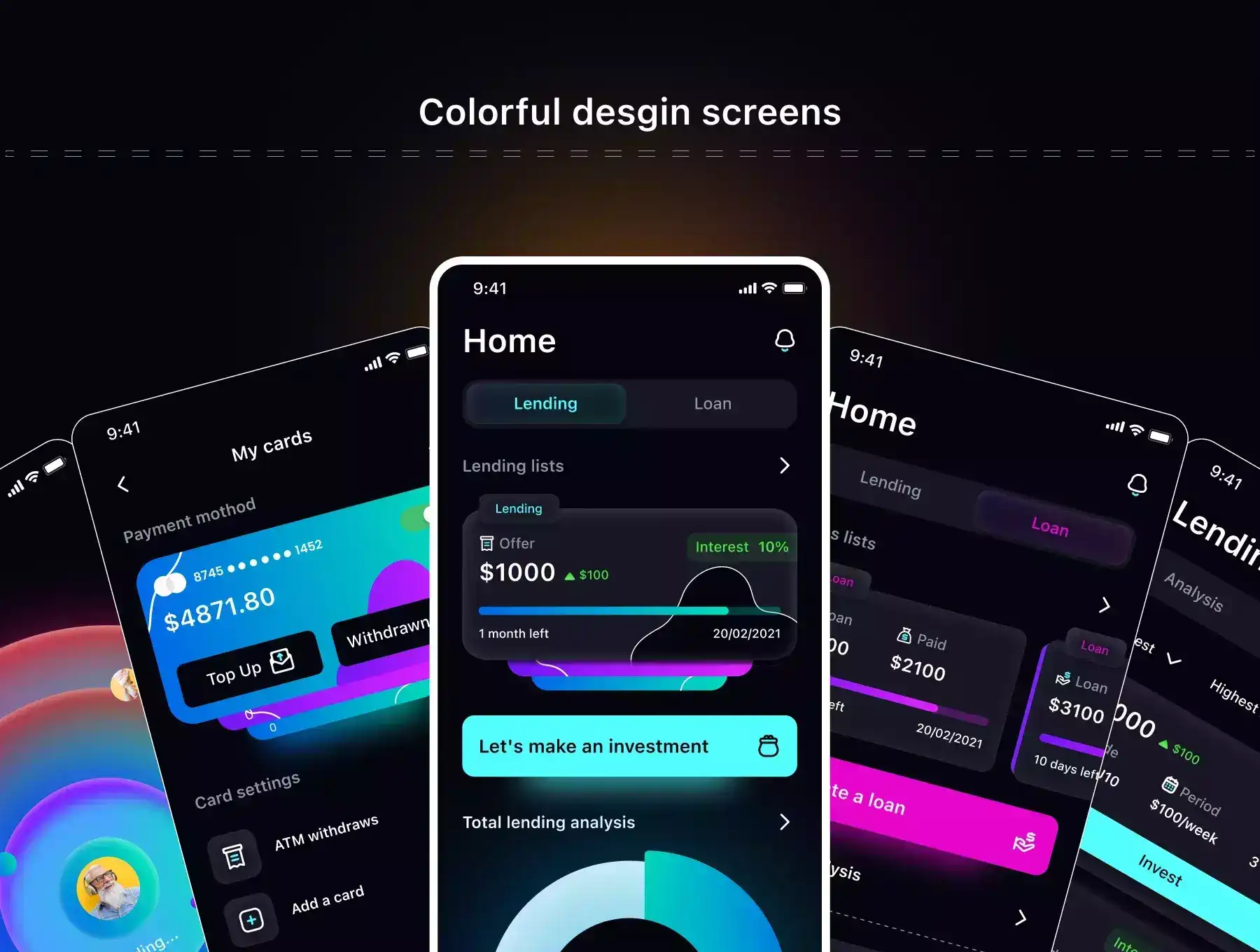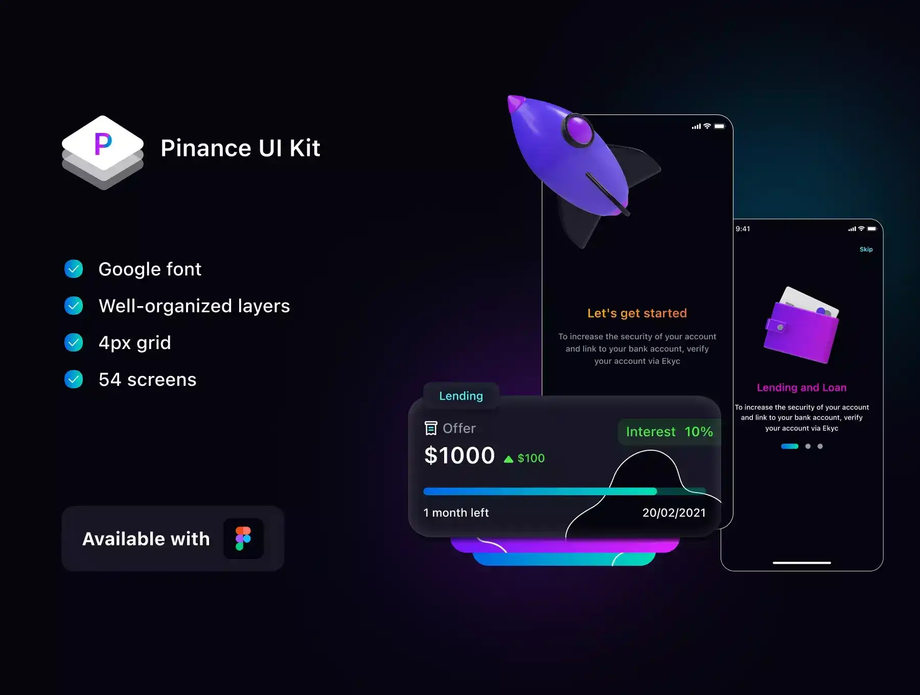 Pinance - Lending UI Kit App Design Template will help you create a prototype for the finance application that you are working on and ready for you to use. This UI kit is designed according to Atomic design base so that all the components are fully customizable. Pinance - Lending App UI Design Template will accelerate and boost your design process and will help you develop an outstanding experience.