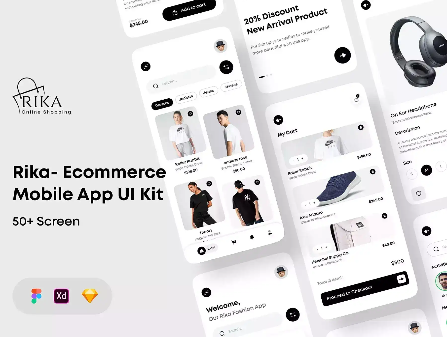 Rika - eCommerce Mobile App UI Kit. These e-commerce mobile apps iOS & Android are very easy to use. I can easily buy any product as per your choice. You can order from the online shop in your home. We have come up with all kinds of new products for both boys and girls. These apps are designed to be a combination of black and white. eCommerce Mobile App a perfect figma, adobe XD, sketch designed 50+ screens in layered and organized elements. Each screen fully customizable, easy to use and screens is ready to use for iOS & Android app. I have sent a package but I do know who to contact about as issue. You can easily change any design. It’s easy to customize and also well documented.