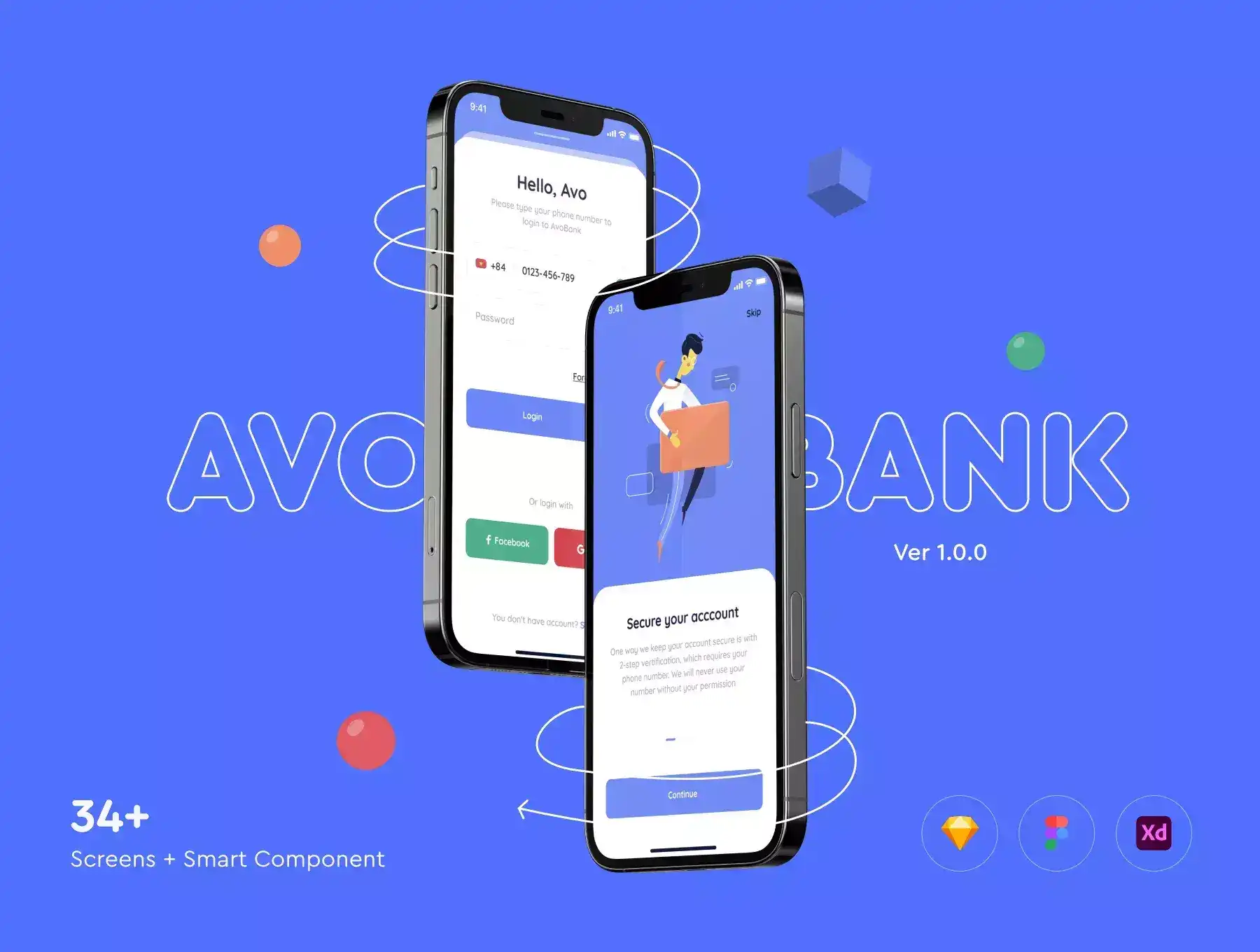 AvoBank is Banking App UI kit designed for brands and designers. Package includes 34+ Screen in Sketch, Figma, XD. Perfect tool to help you create your own project. With 100% Vector and Creative Illustrations, AvoBank is the perfect starting point!