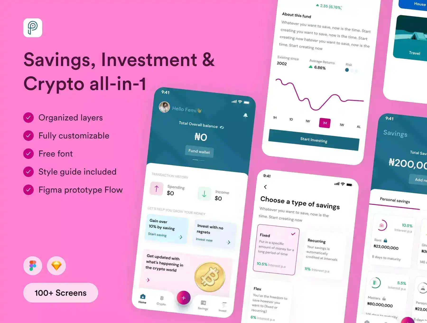 Pamoja Finance UI Kit is a combination of investments, savings, and crypto platforms. With this kit, you have access to more than 110 well-designed UI screens, elements, and components.
