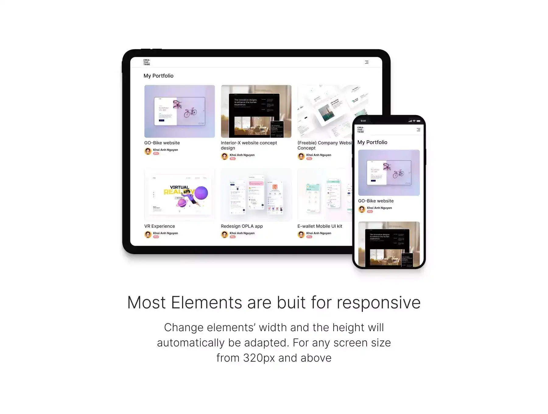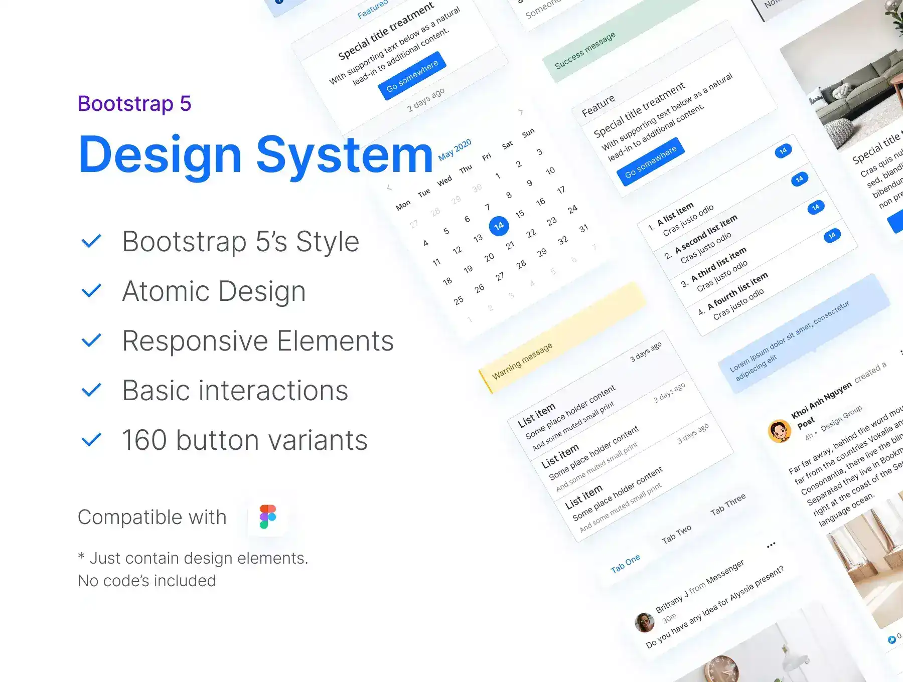 This design system was built with Auto Layout and Variants in Figma. So every item fully supports the responsive design from the very least 320px screen.