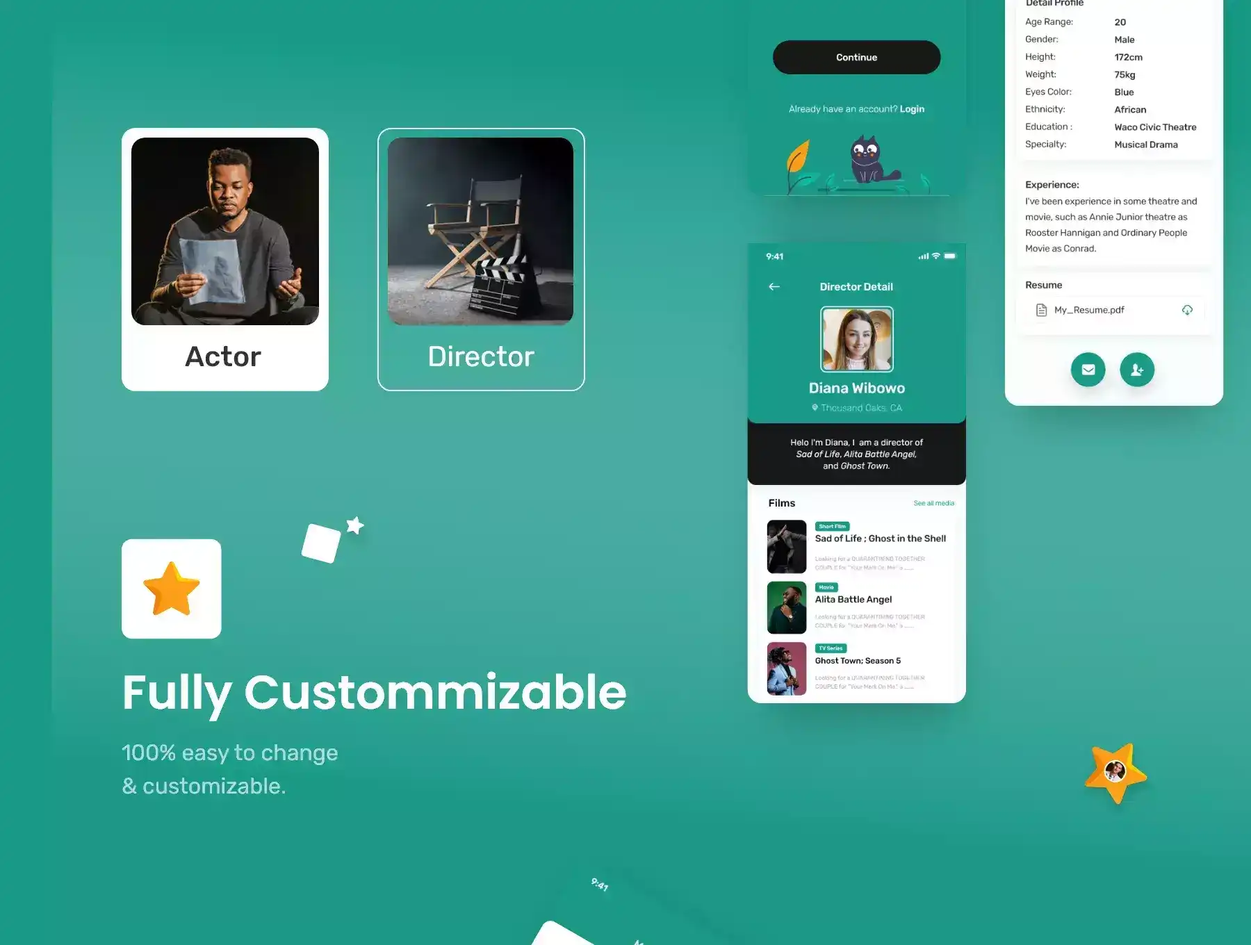 Starcast is a Casting App to connect Actors/actress with the director and producer to casting a movie. Completely new and easy use concept. This UI Design Template will boost your design process and will help you develop an outstanding experience.