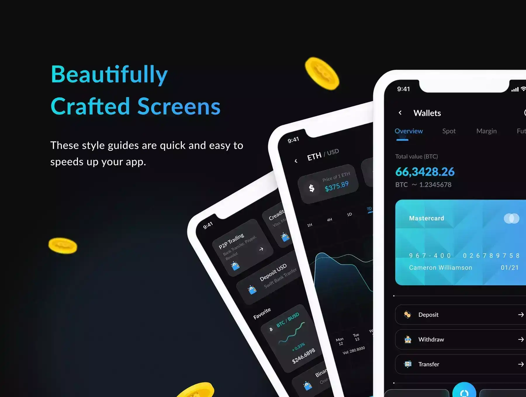 Cripto is new marketplace template contains 40+ designed screens with customable component and organized layout.