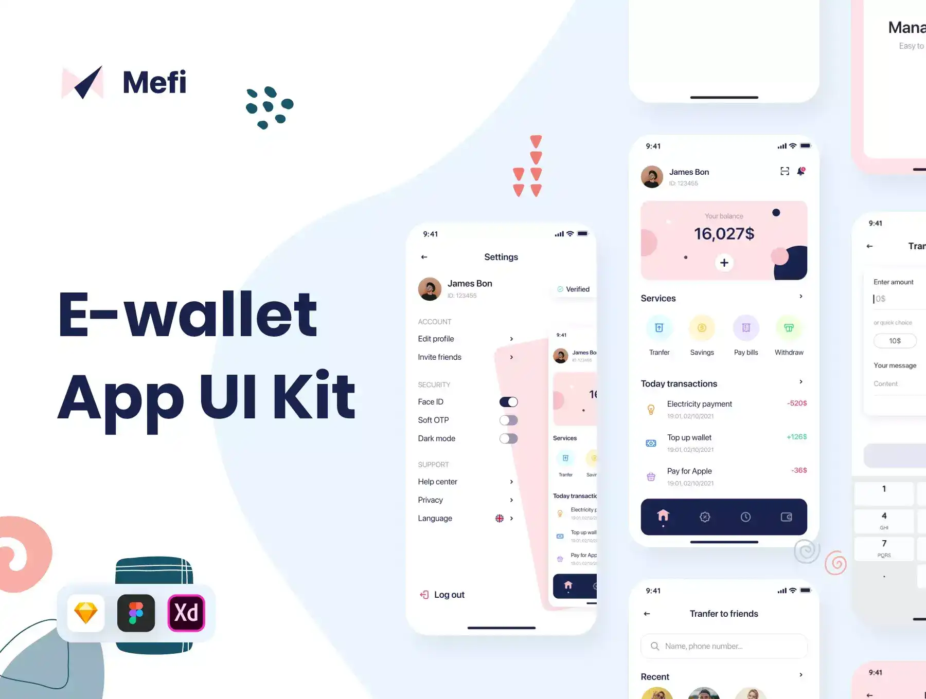 MeFi is a high quality UI Kit for Wallet & Finance apps with a pack of 50+ amazing app screens.