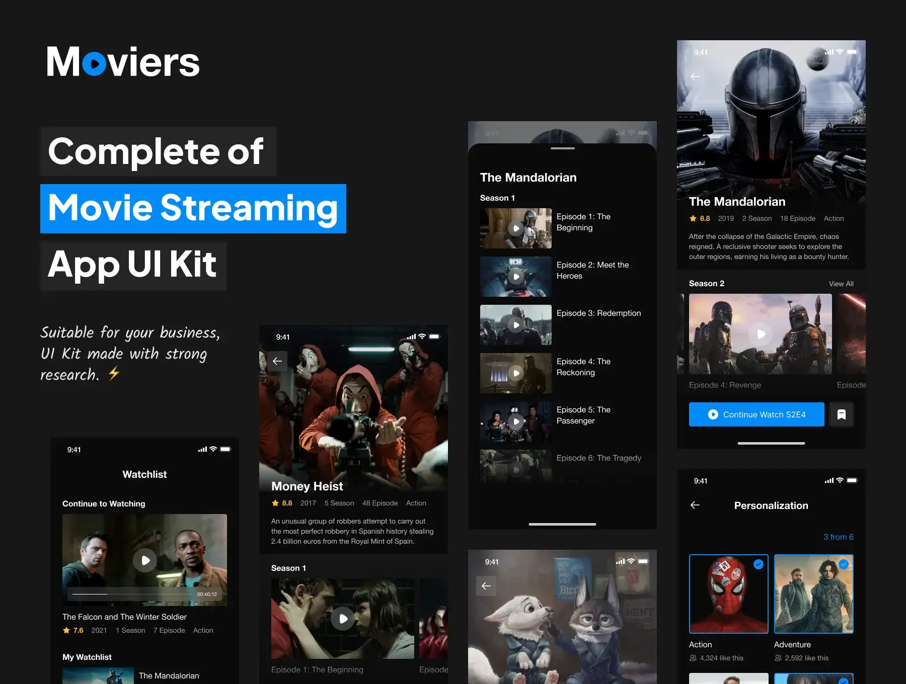 The UI Kit is suitable and easy to fully customize for any kind app movie streaming app and also the screens is usable for other product design as well.