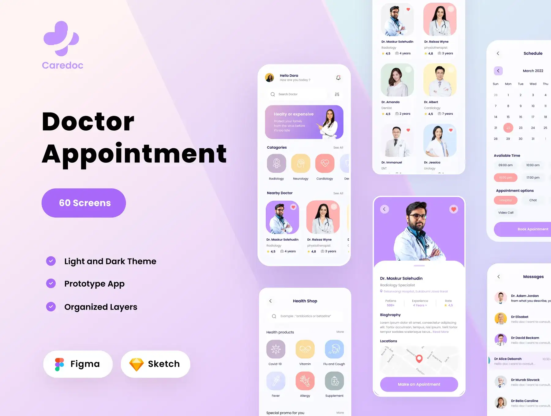 Caredoc is a Premium and High-Quality doctor Appointment and medicine store App UI Kit with 60 high-quality screens and easy to use in Figma and Sketchapp. Available in Light & Dark theme.