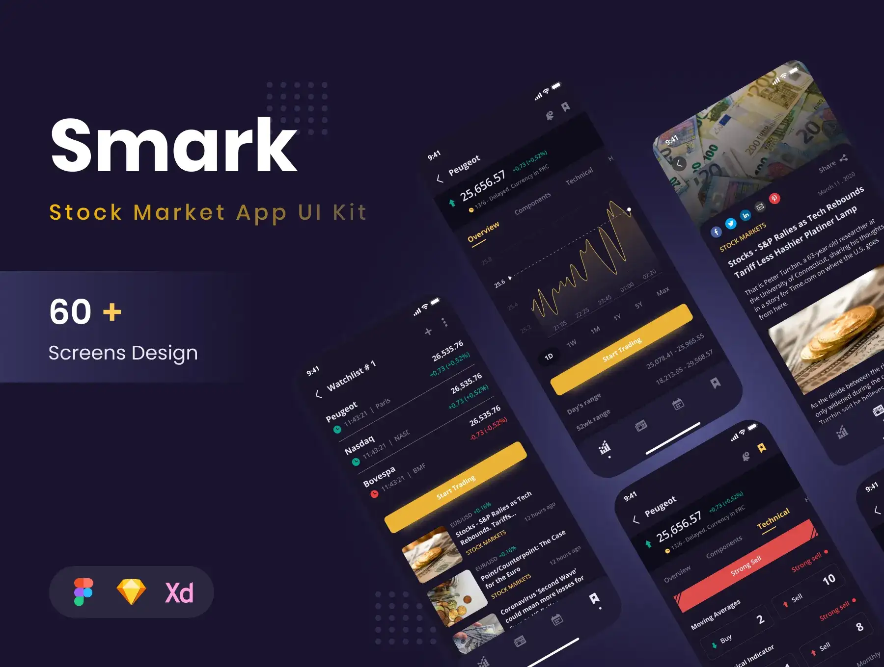 Smark is a beautiful UI Kit for a great mobile stock mobile app experience. It allows users to keep track of stock index, business news, in-depth analysis, purchase rate, market news stream, technical analysis, etc. Smark also allows users to calculate foreign currency prices in the app. Users can find potential stocks to invest by adding as many criteria as you want.