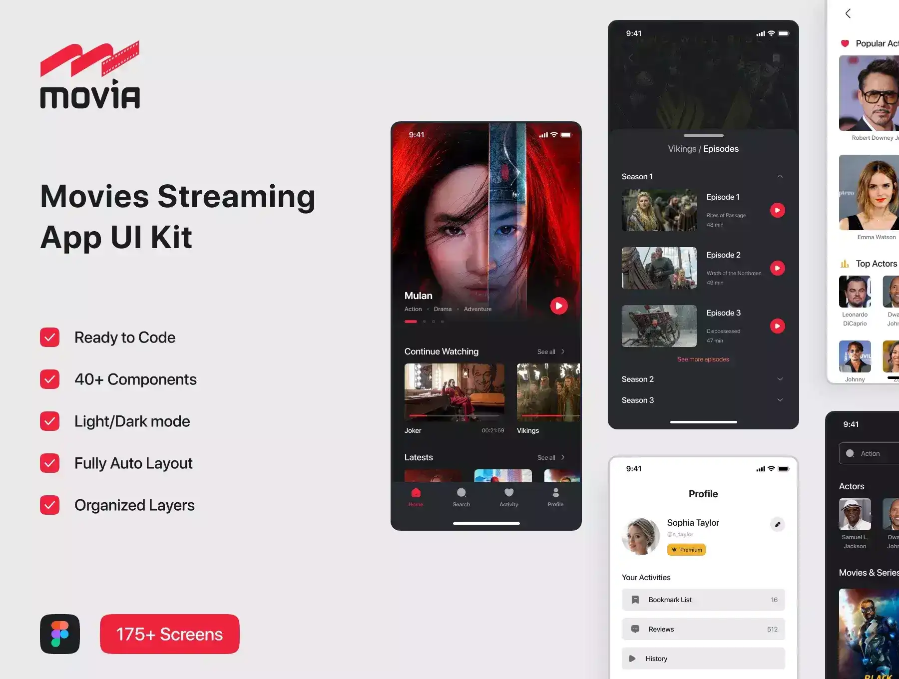Movia is a High-Quality Movies Streaming App UI Kit for Figma.