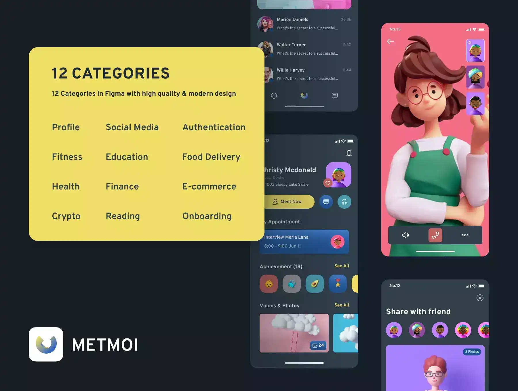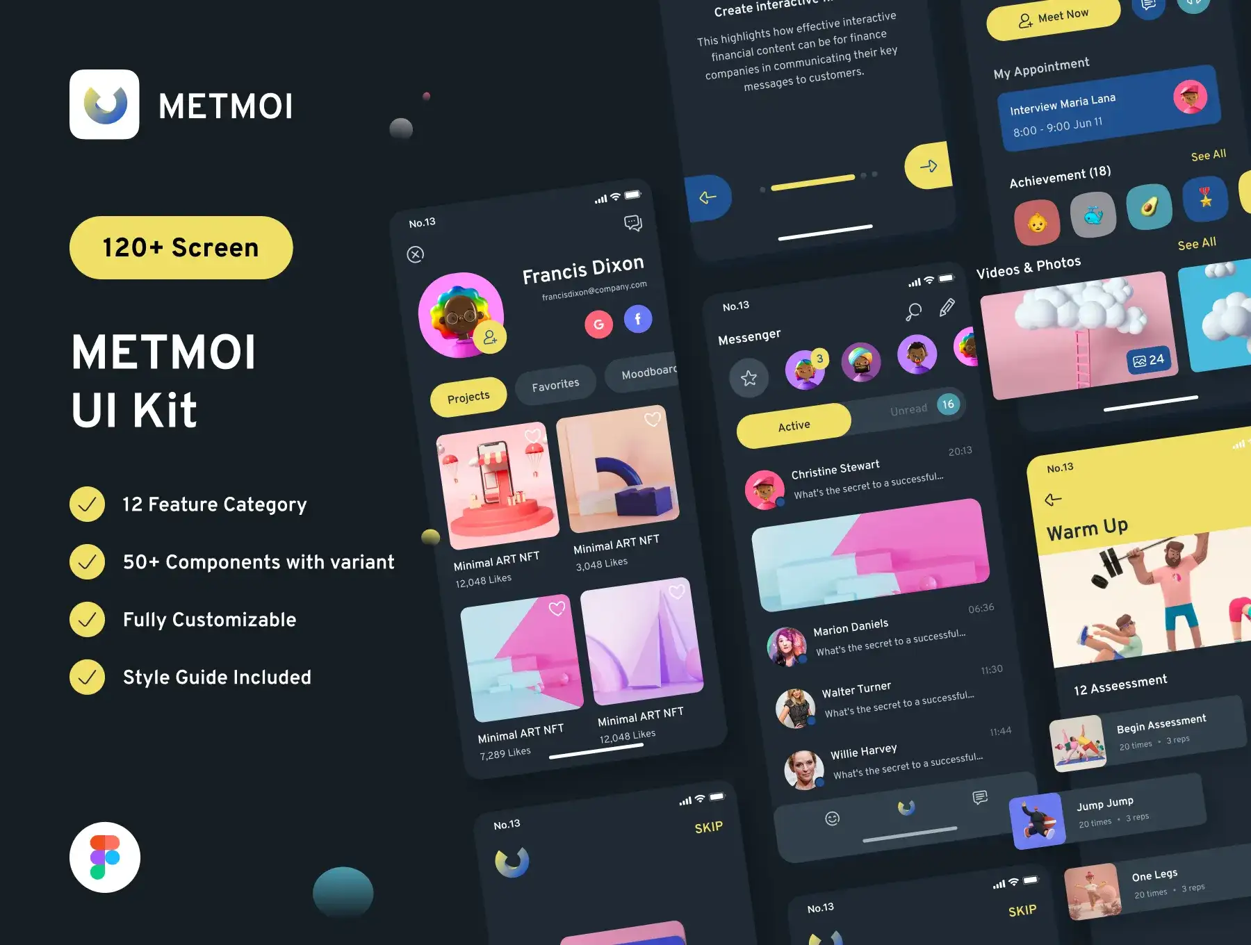 Metmoi – UI KIT Mobile App is an unique & creative with high quality & modern design. This package included 120+ iOS screens and over 200+ UI elements. They are fully customizable layers & easily editing FIGMA