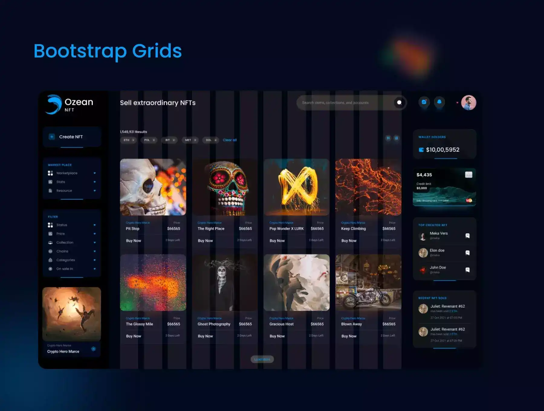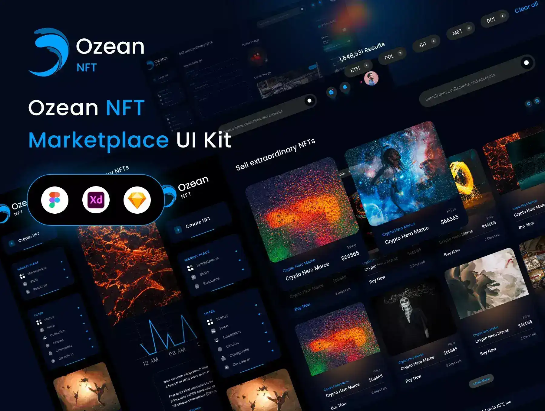 The Ozean NFT Marketplace UI Kit is an high-quality UI design kit and components for the NFT marketplace. And it's available in Figma, XD and sketch.