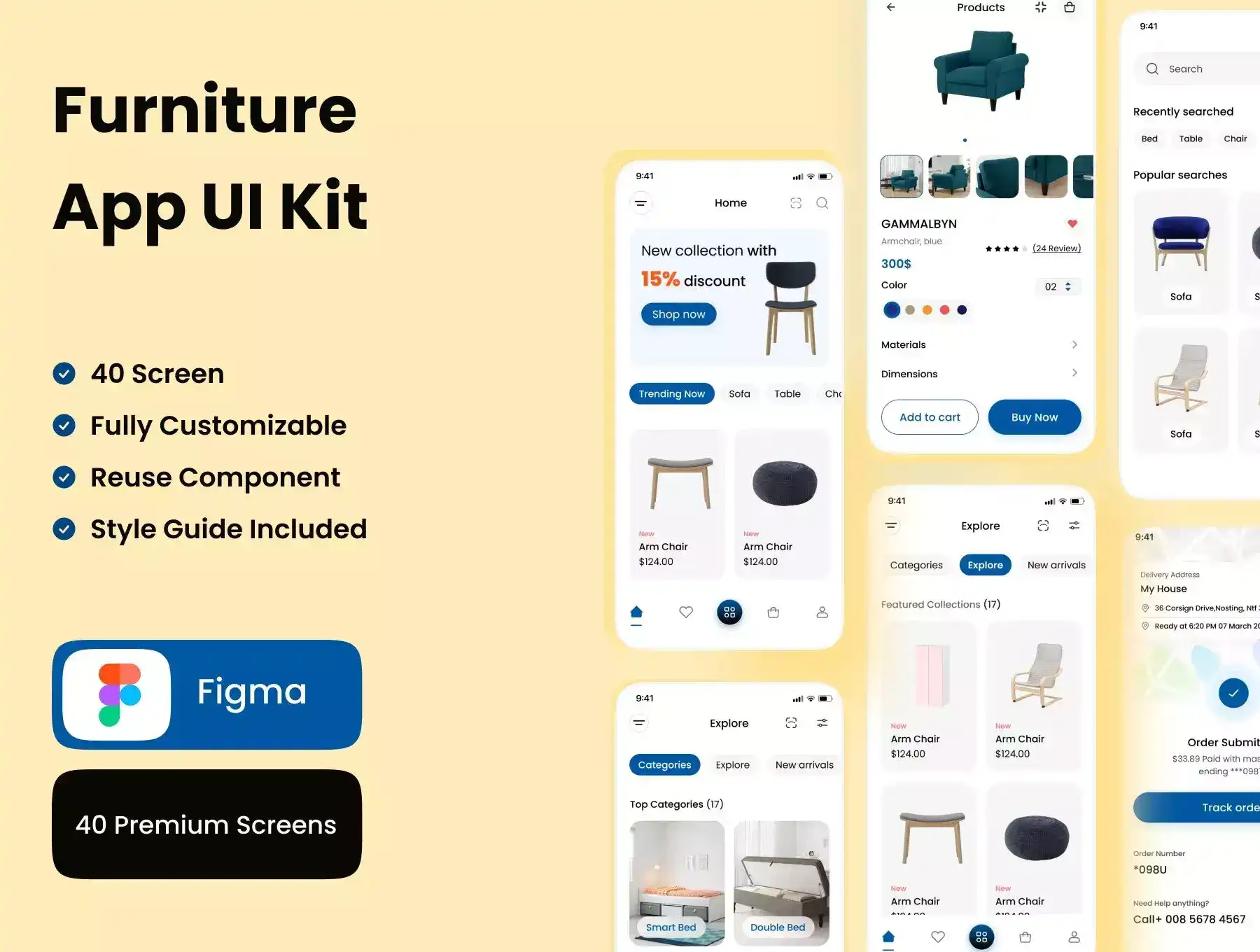 Furnitura - furniture mobile app UI kit. Which allows users to order various quality furniture but not have to go to places. It also helps users search for ideas from other people to decorate their homes. Furniture mobile app is a perfect Figma, 40+ screens in layered and organized elements. Each screen is fully customizable, easy to use and screens is ready to use for the iOS app. I have sent a package but I do know who to contact about this issue. You can easily change any design. It’s easy to customize and also well documented.