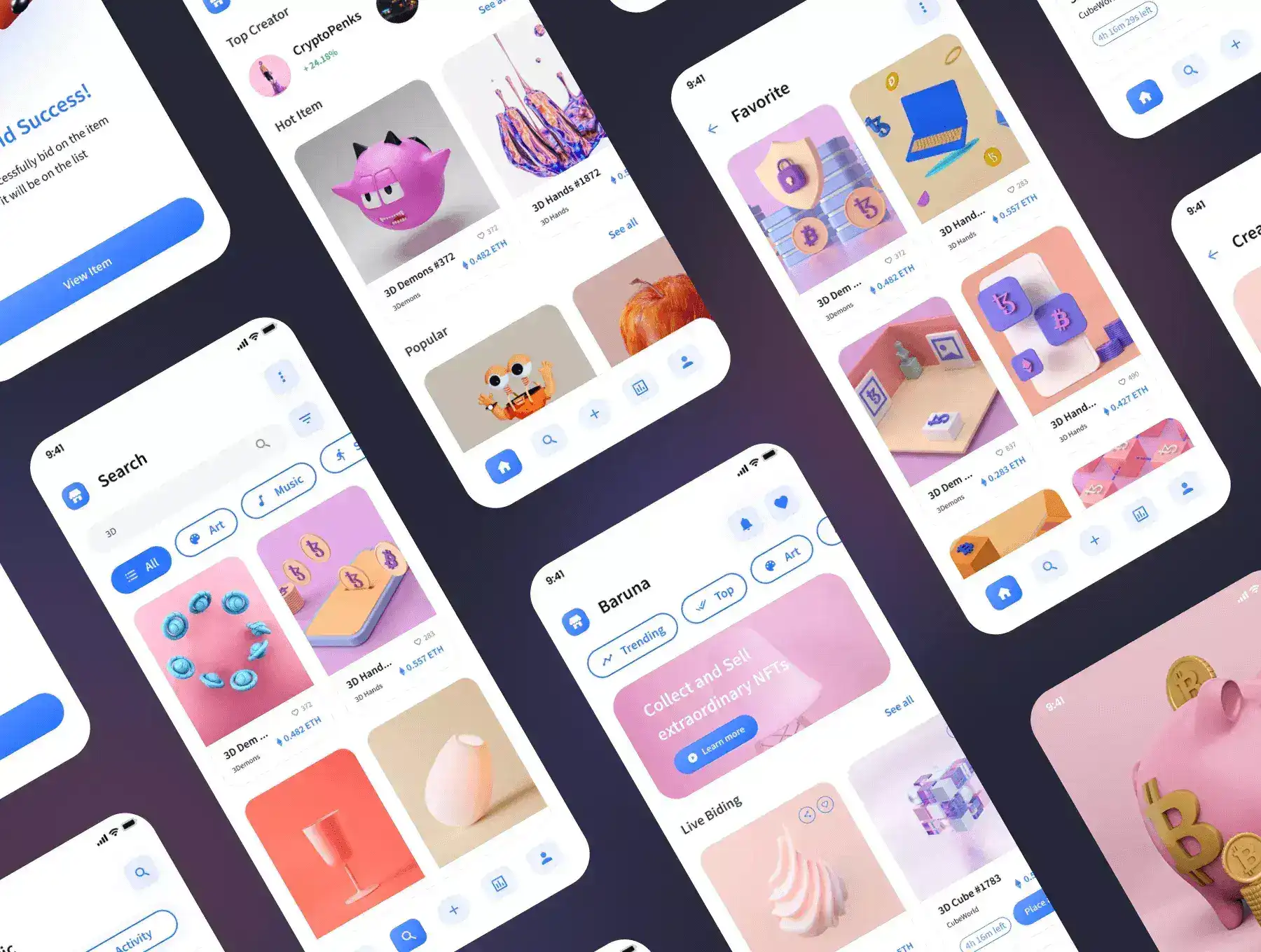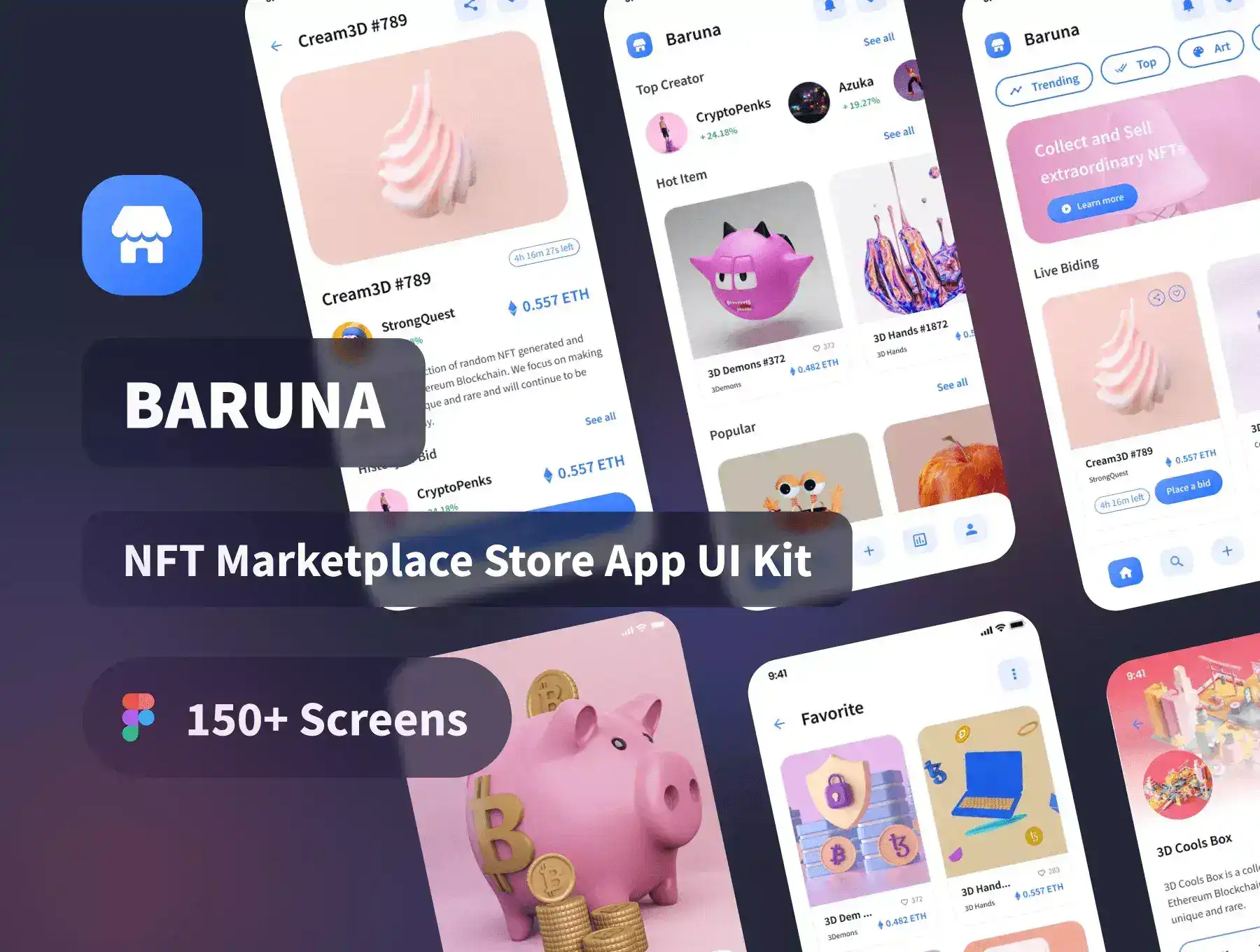 Baruna is a Premium and High-Quality Online Marketplace, Store, Sell, & Buy NFT Mobile App UI Kit with 152 Screens which is highly customizable. Designs are available in Figma. In addition, the design is also equipped with a version of Light & Dark Theme.