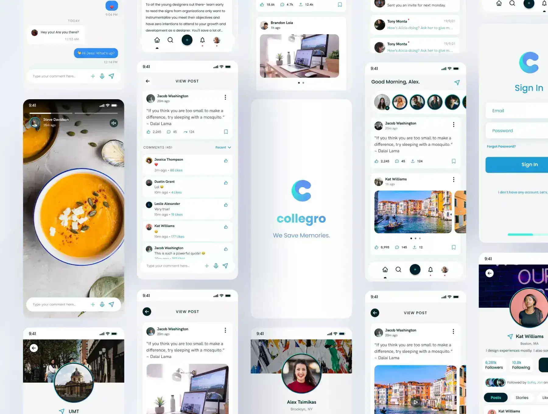 Design your next College Social Media App UI Project in minutes or get ideas with these new screen designs.