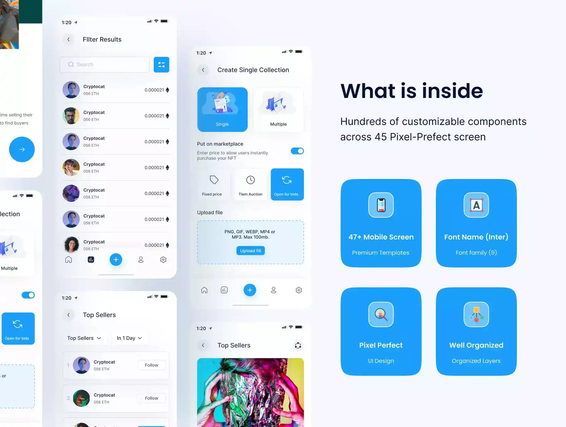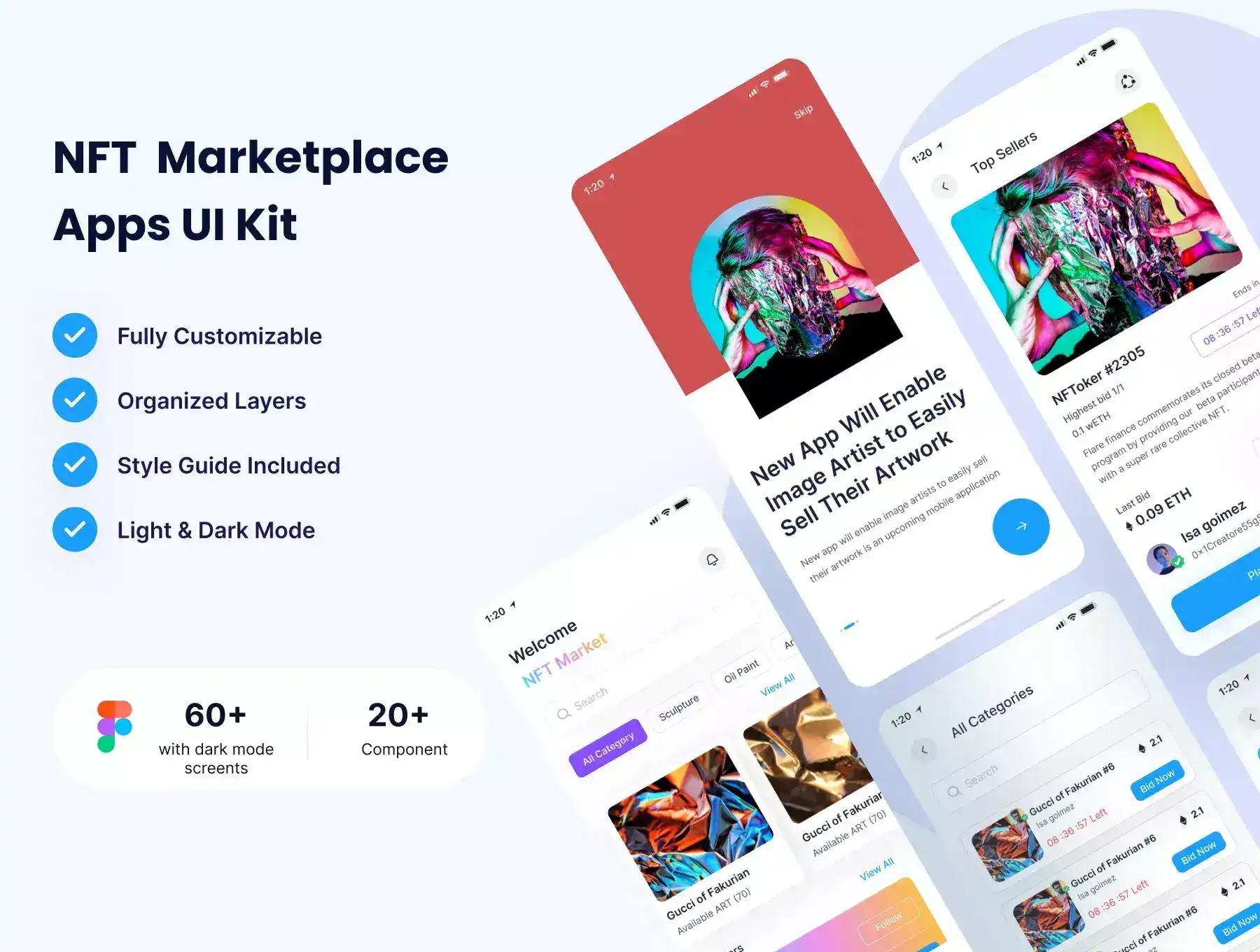 NFTX is a Premium and High-Quality NFT Market App UI Kit consisting of 60+ pixel-perfect screens and easy to use in Figma.