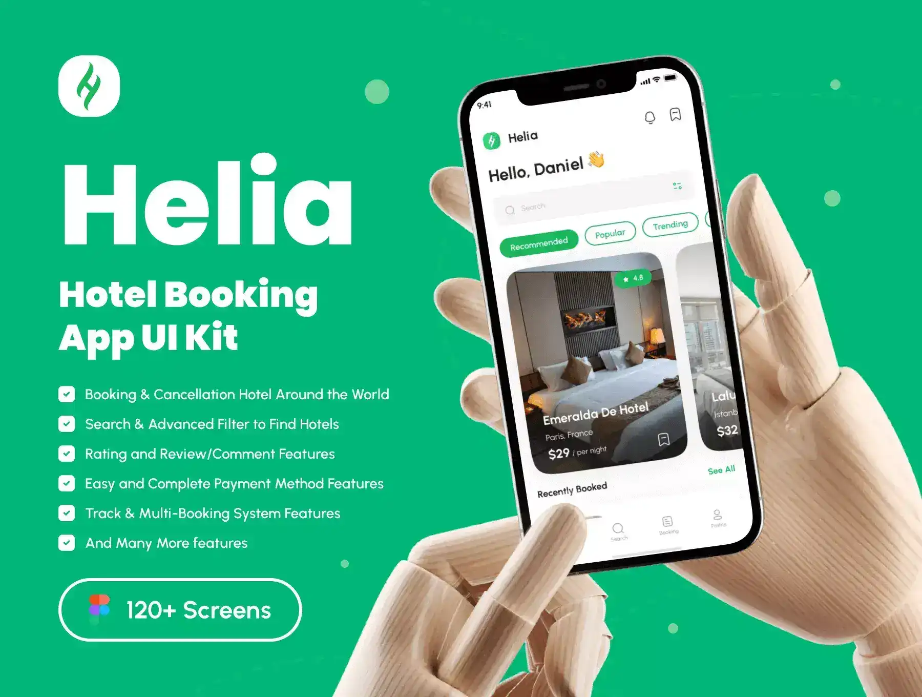 Helia - Hotel Booking App UI Kit is equipped with iOS/Android support (design system included) and 120+ screens which is 100% editable & customizable. Designs are available in Figma. In addition, the design is also equipped with a version of Light & Dark Theme.