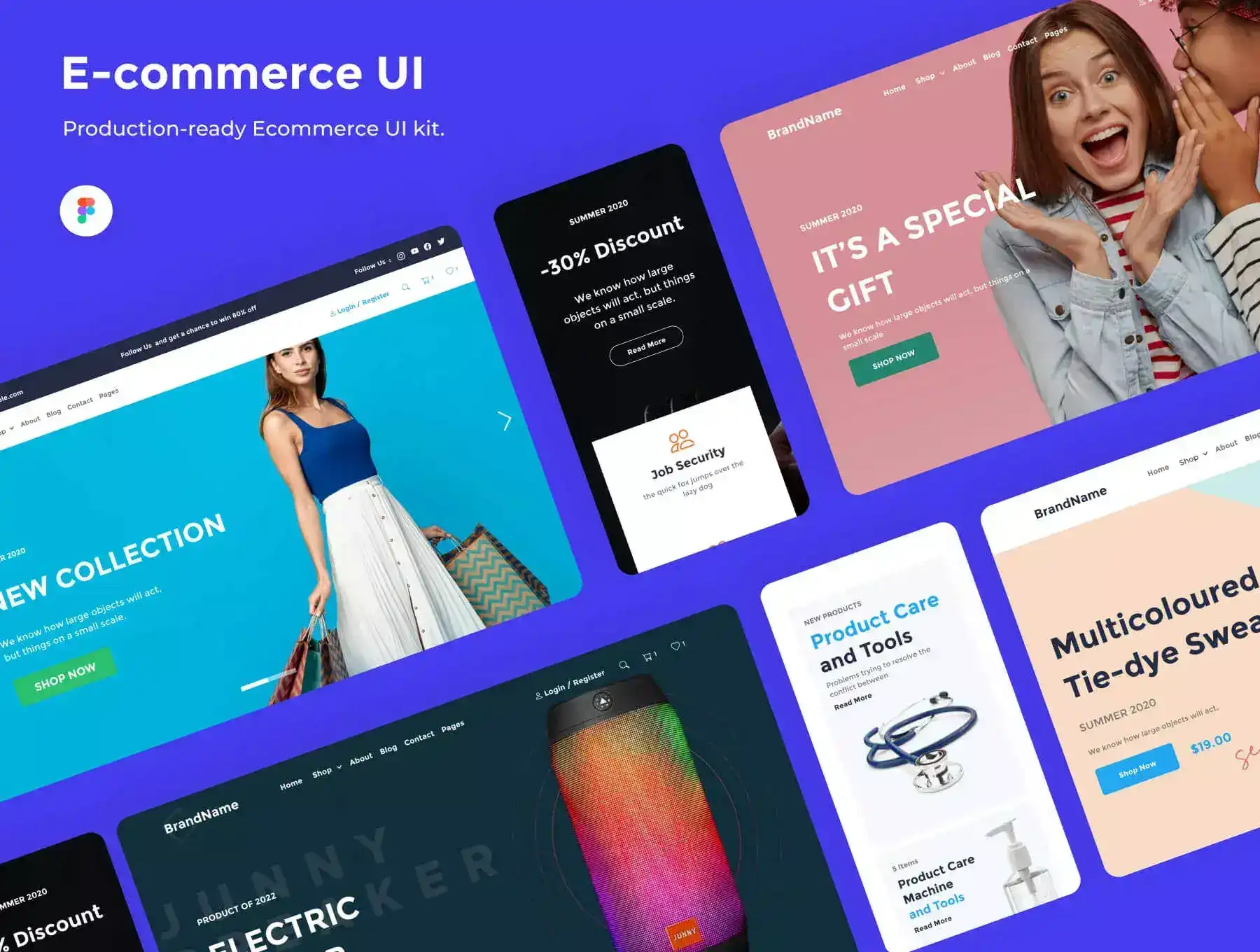 E-commerce UI is a feature-rich Figma UI Kit with ready-to-use components and elements for creating a smooth user experience.