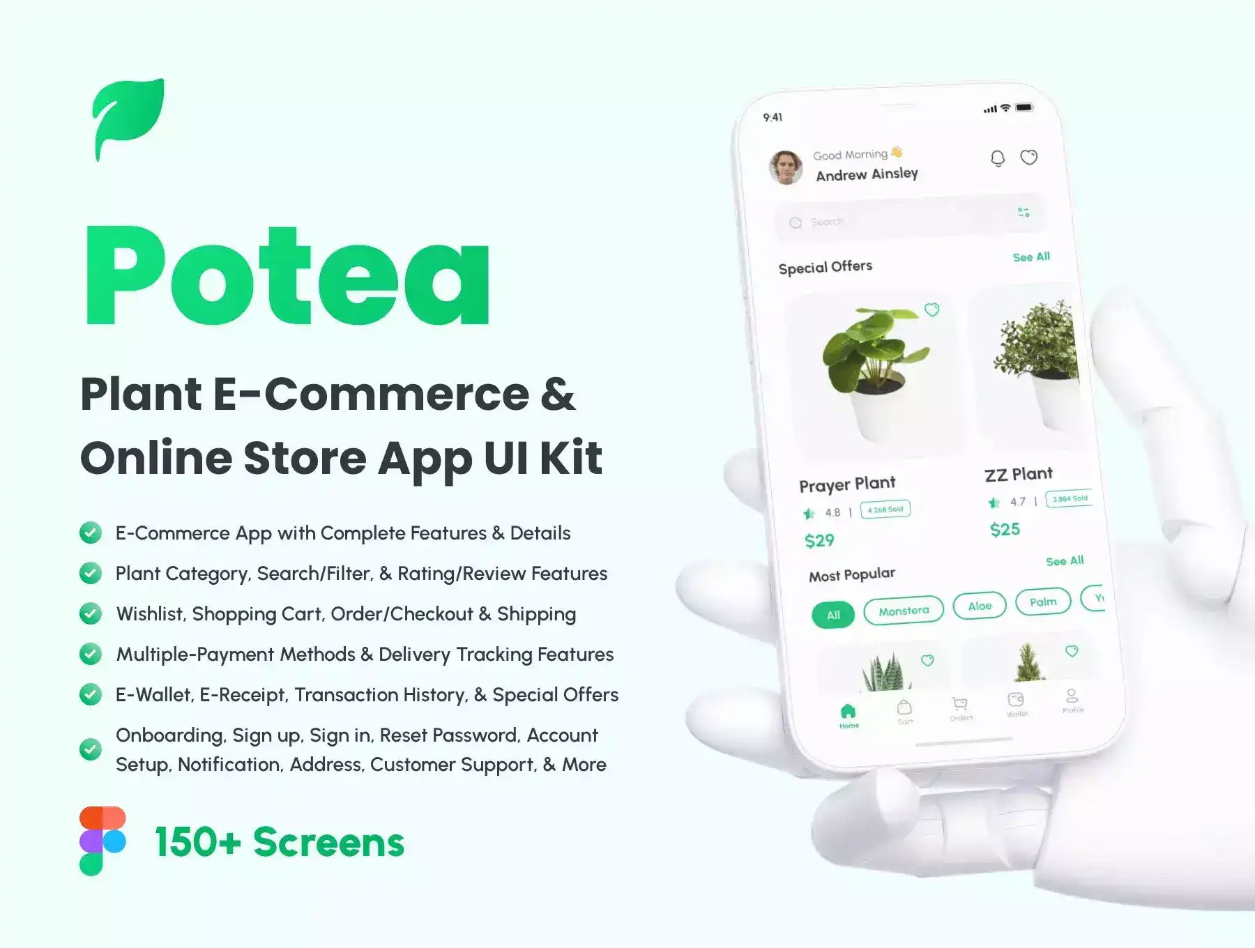 Potea is a Premium & High Quality UI Kit with Complete Features of Ecommerce, Online Shopping, & Marketplace Store App for Plant. Potea came with unique style and niche, you can easily edit and customize all elements with design components which can speed up design process for your projects. Everything is integrated with the design system, so you only need to change the color, logo, text, and so on in the design system, then the entire design screen will automatically change.