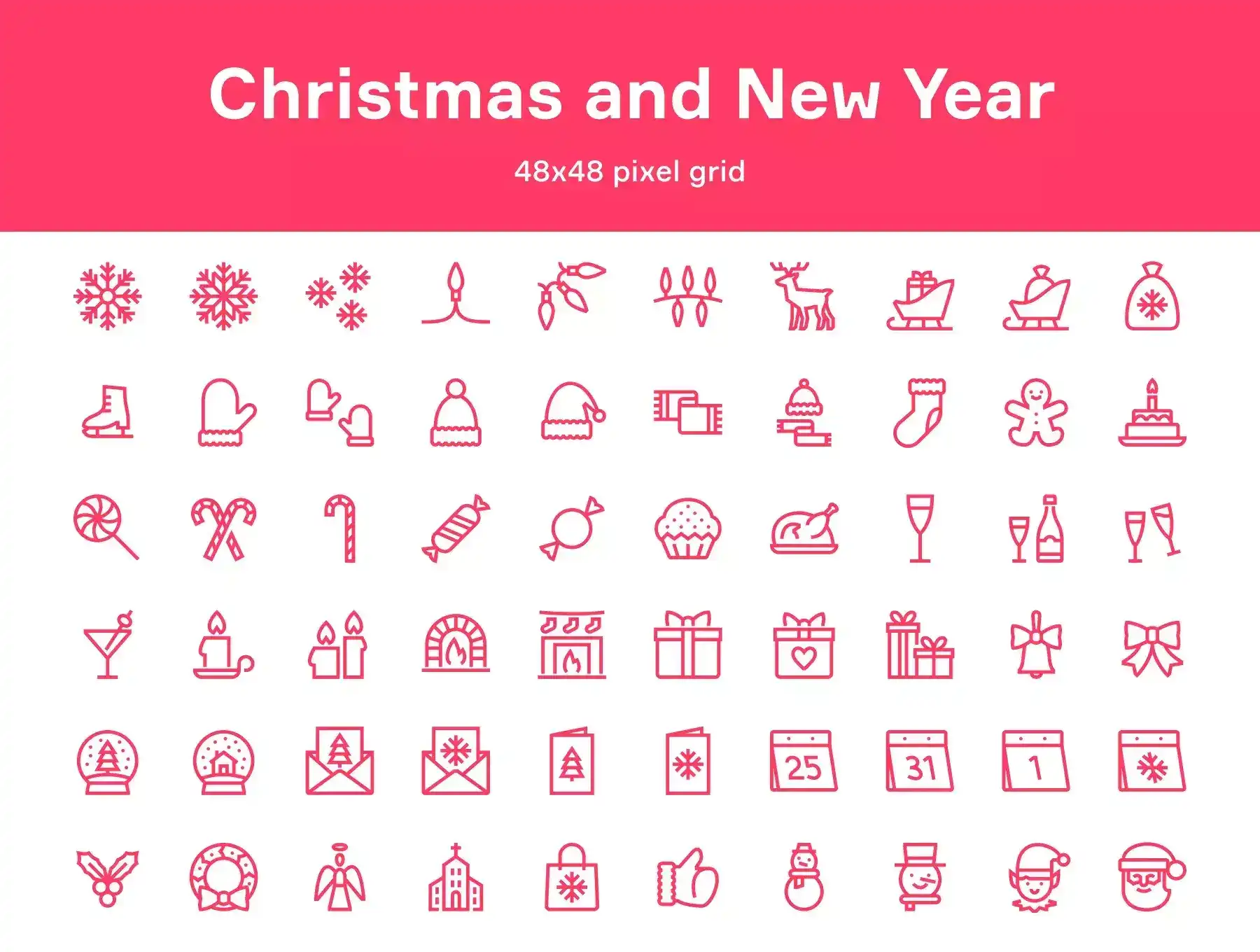 Set of 80 Christmas and New Year vector icons. Outline style. Just click preview button to see all the icons.