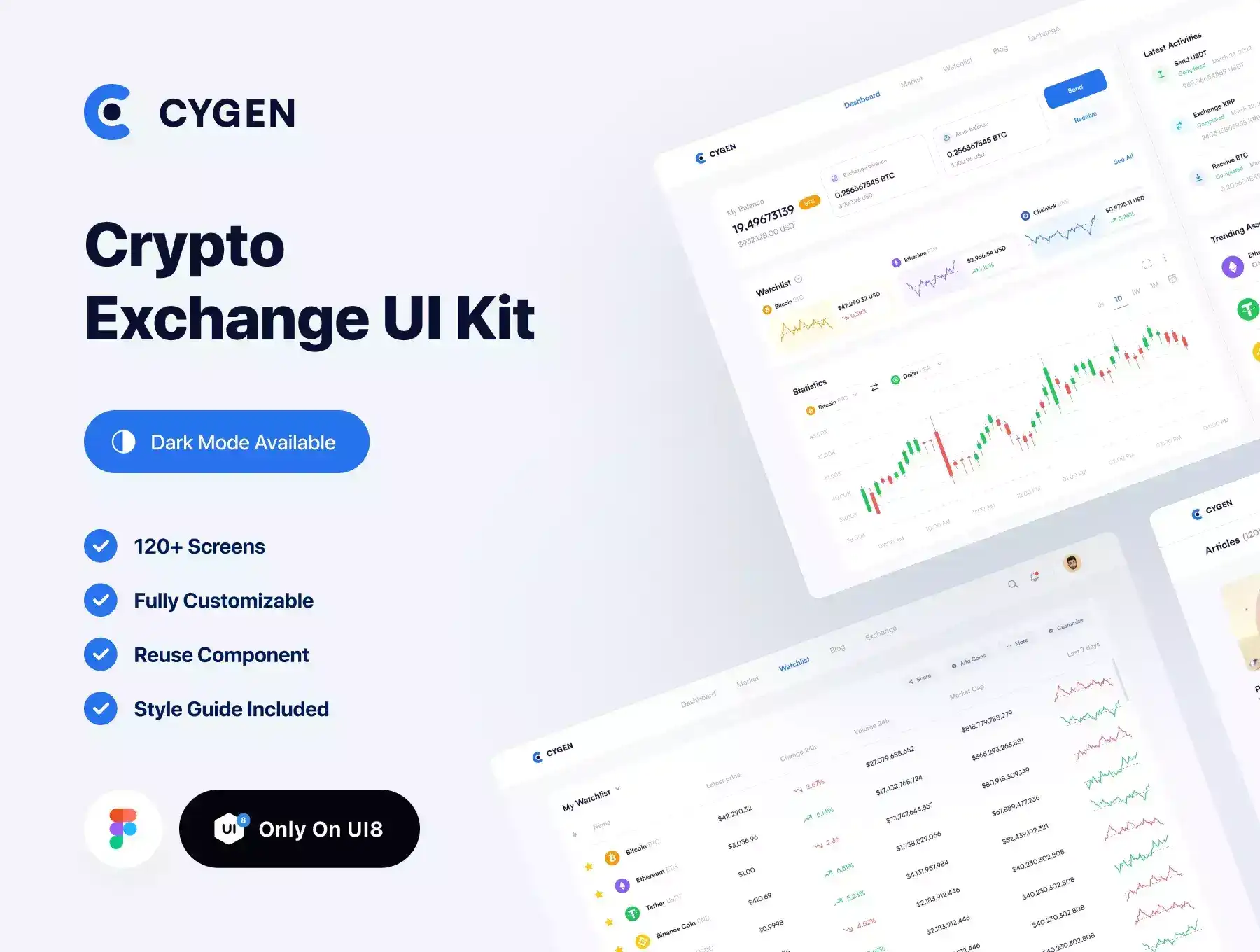 Cygen is a Premium Crypto Exchange Dashboard UI Kit consisting of 120+ pixel-perfect screens and easy to use in Figma.
