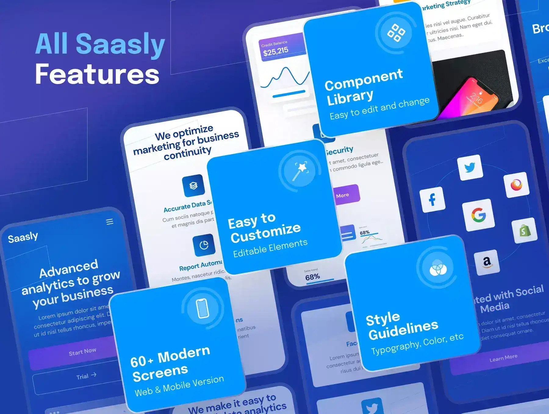 Saasly - Tech & SaaS Website and Mobile UI Kit will help your Technology & SaaS products or services. Came with clean and professional style, you can easily edit and customize all elements with design component which can speed up your design process.