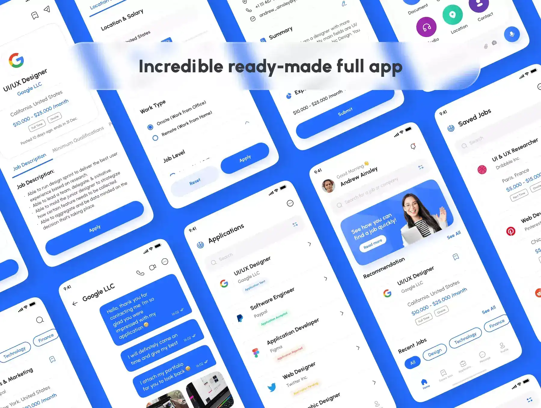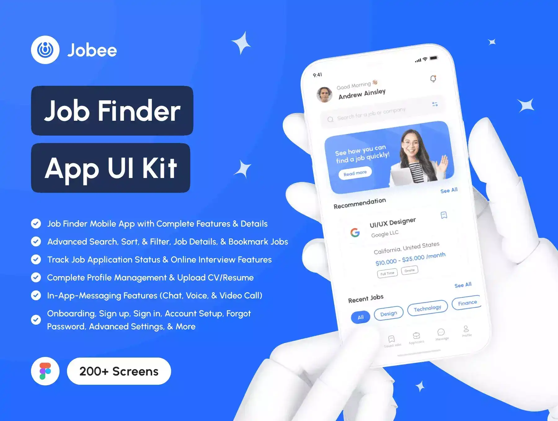 Jobee support for iOS/Android (design system included) and 206 screens which is 100% editable & customizable. Designs are available in Figma. In addition, the design is also equipped with a version of Light & Dark Theme.