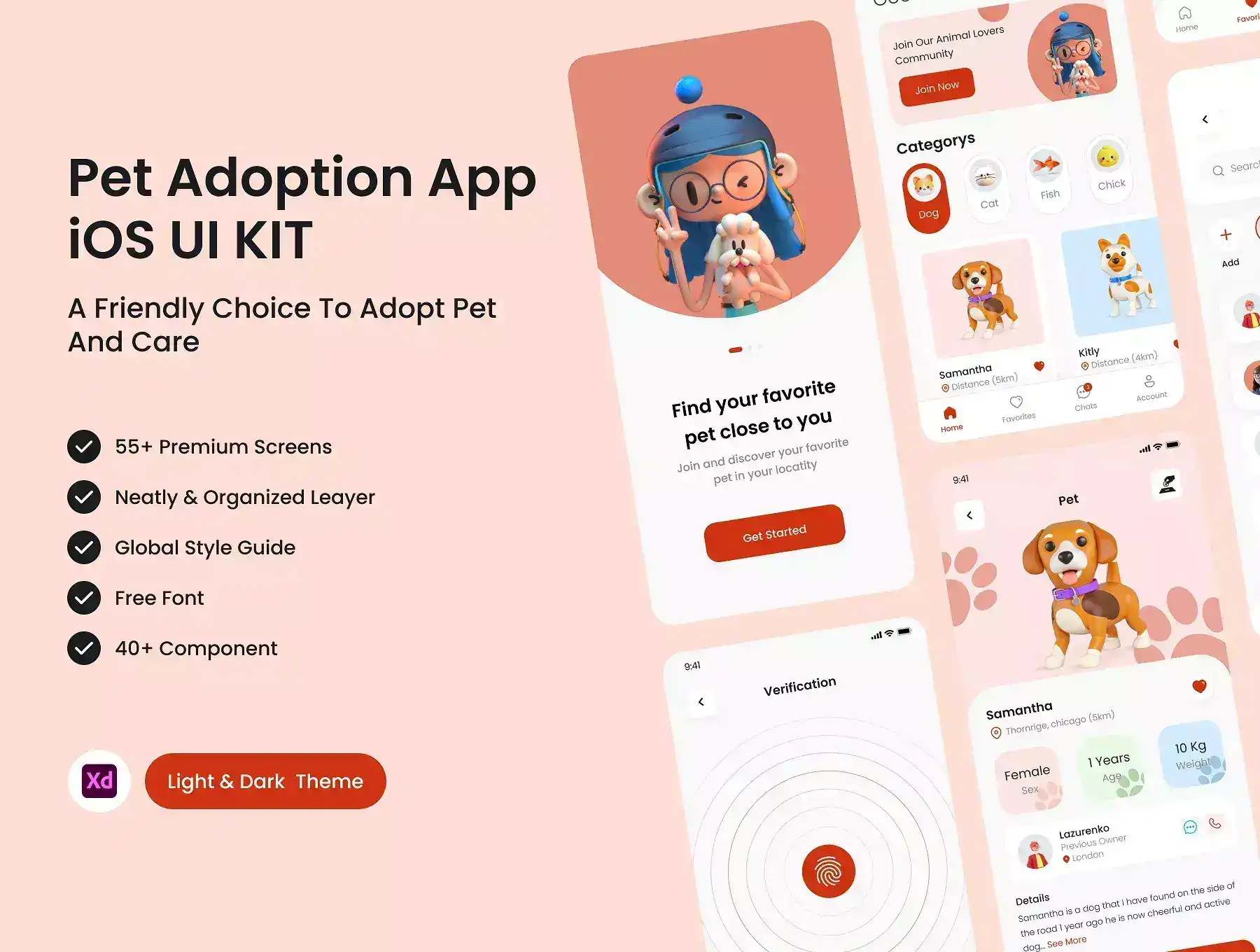 Pet is a Premium and High-Quality Pet Adoption App UI Kit with 55+ high-quality screens and is easy to use in Adobe XD. Available in Light & Dark theme.