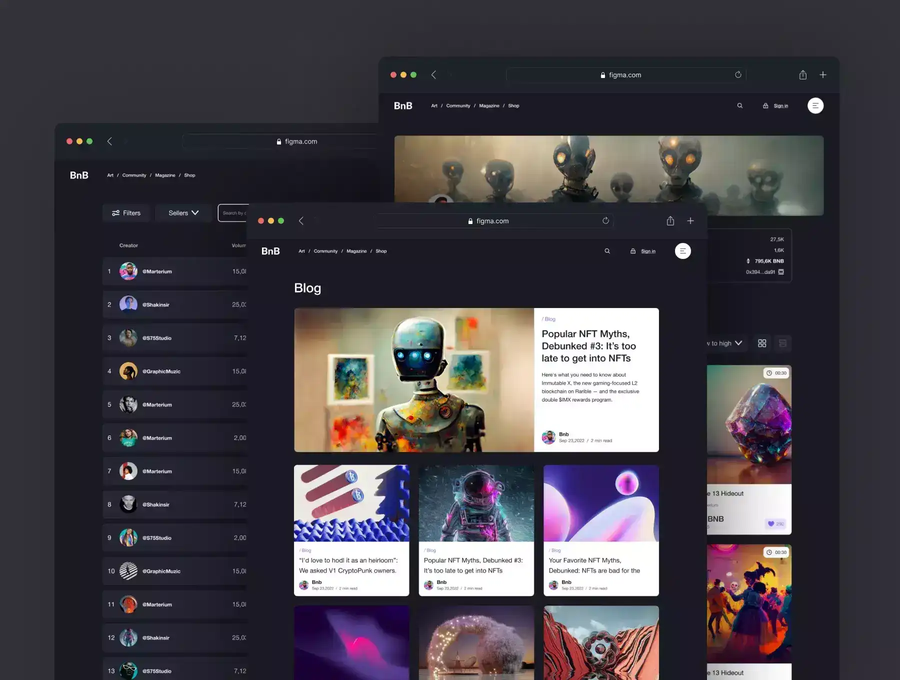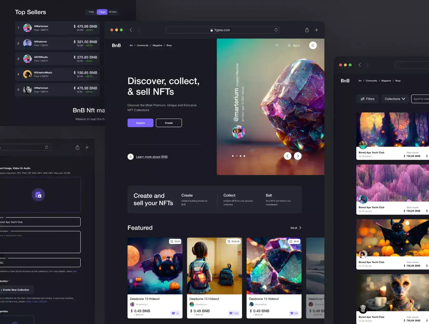 NFTX is a Premium and High-Quality NFT Website UI Kit with clean, modern, and mobile responsive design which contains 64 high-quality screens. Available in light mode and dark mode and easy to use in Figma. We made a high quality, responsive components for a faster process. Drag, drop and mix different parts to quickly build your own NFT site.