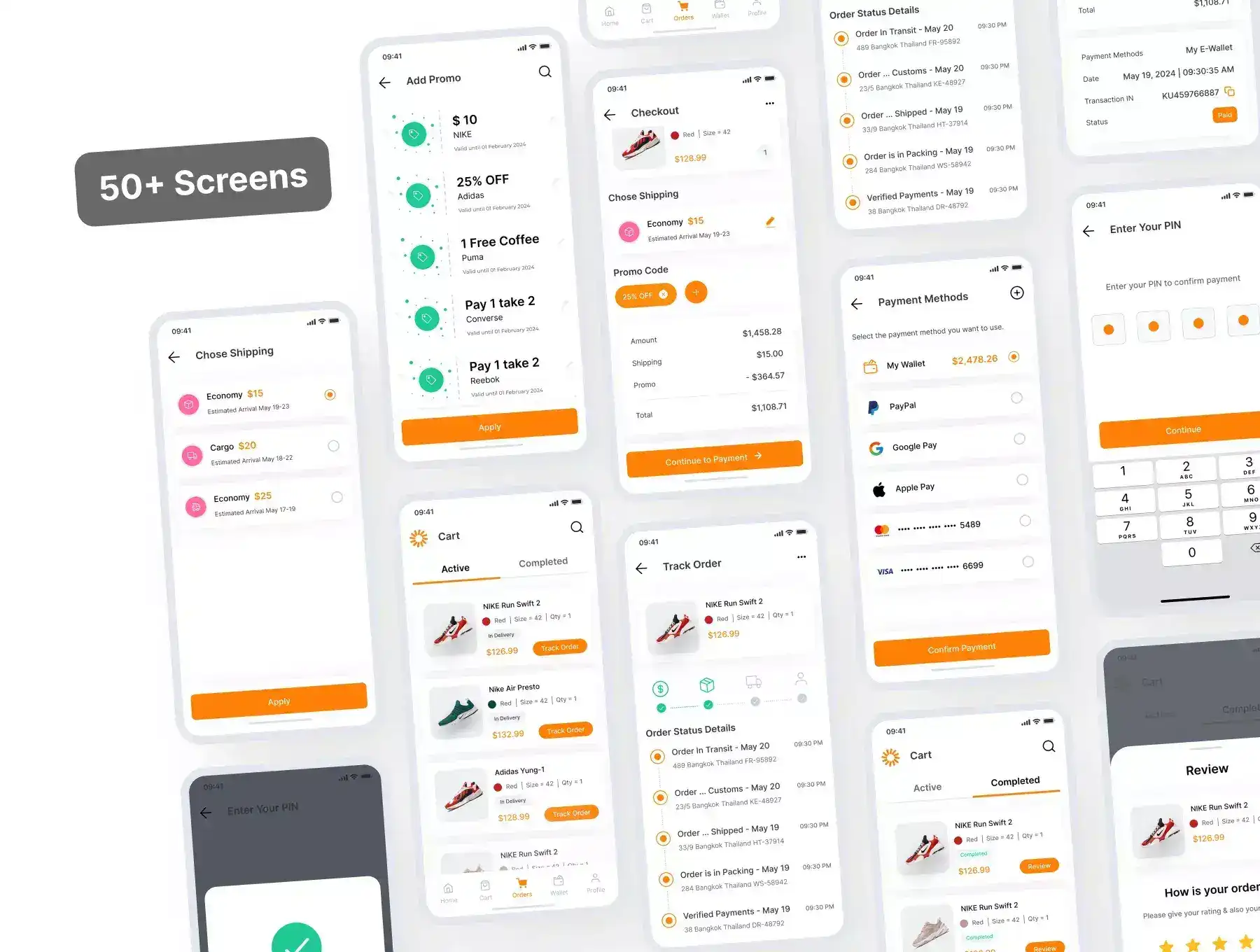 E-commerce ui kit is compatible with Figma, and is designed with good layer and group organization. There are 50+ screens that can be customized very easily, there is also a style guide such as fonts and colors in it.