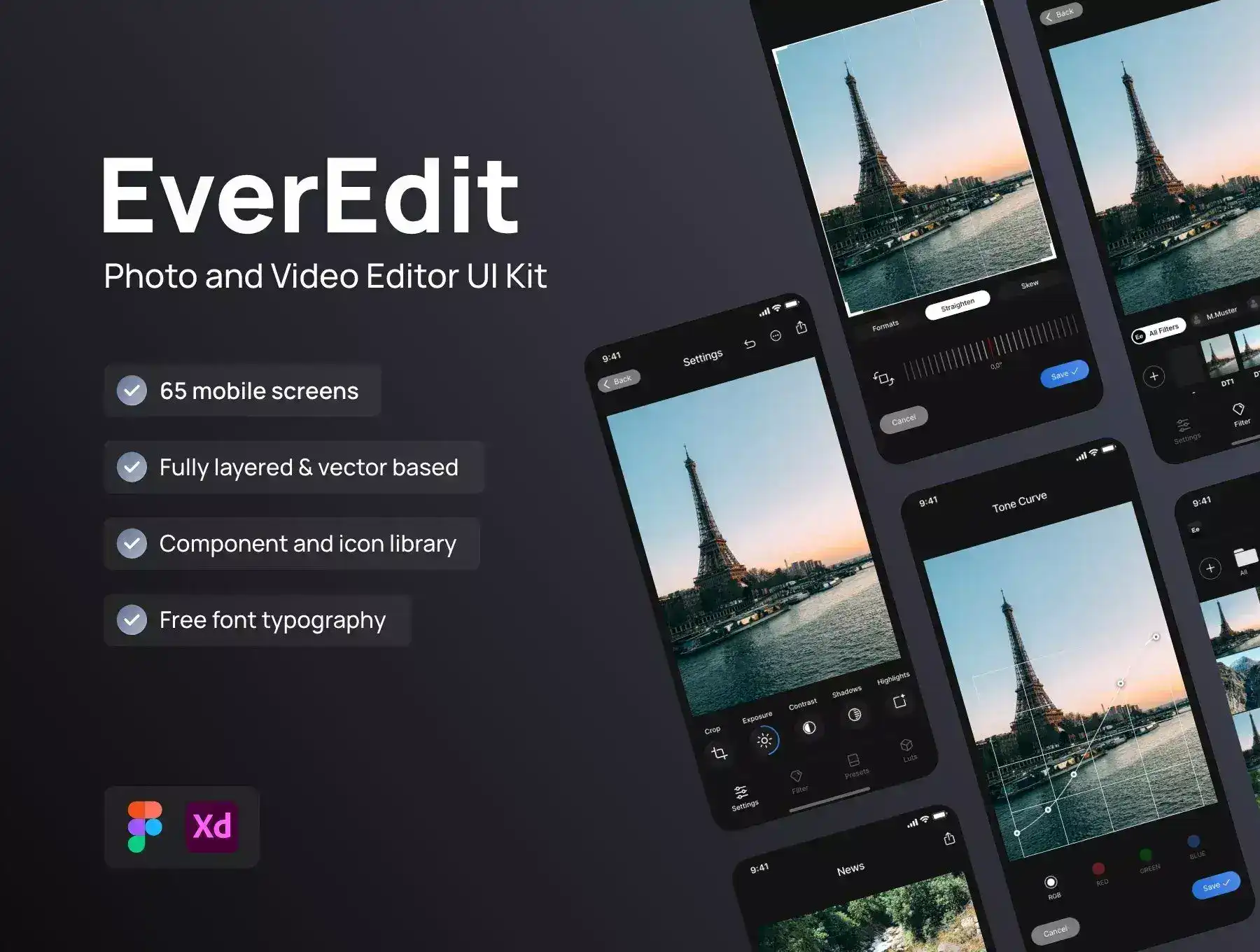 Your premium all-in-one photo and video editing ui kit. EverEdit includes all the necessary functions you need to edit photos and videos. Each screen is fully customizable, super easy to use and organized. 65 screens to spark your creativity and save a lot of time.