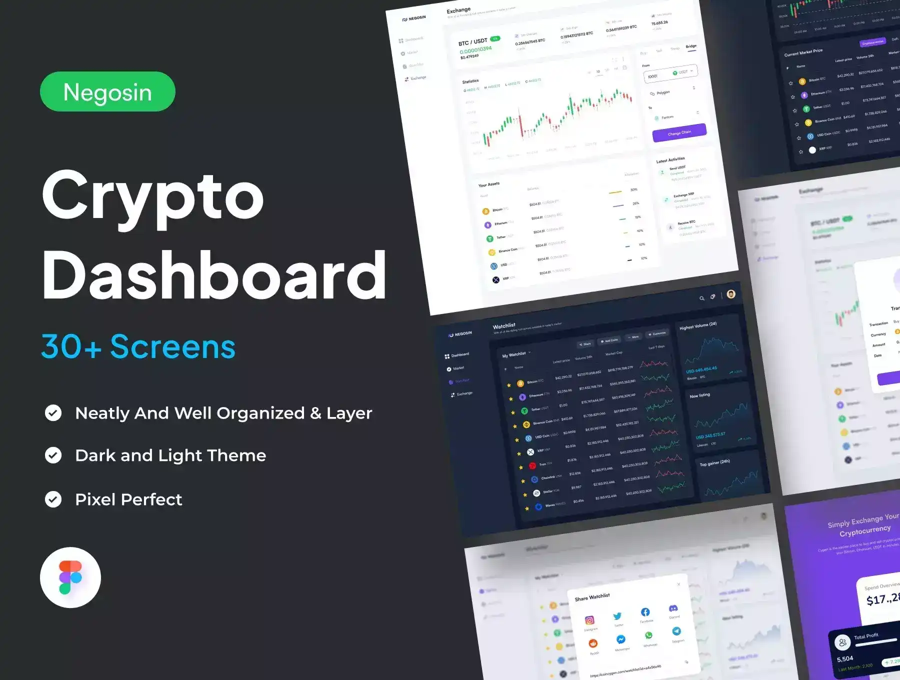 Negosin is Crypto Tracking Dashboard UI Kit with clean, neat, and modern design. this UI Kit contains 30+ high-quality screens.