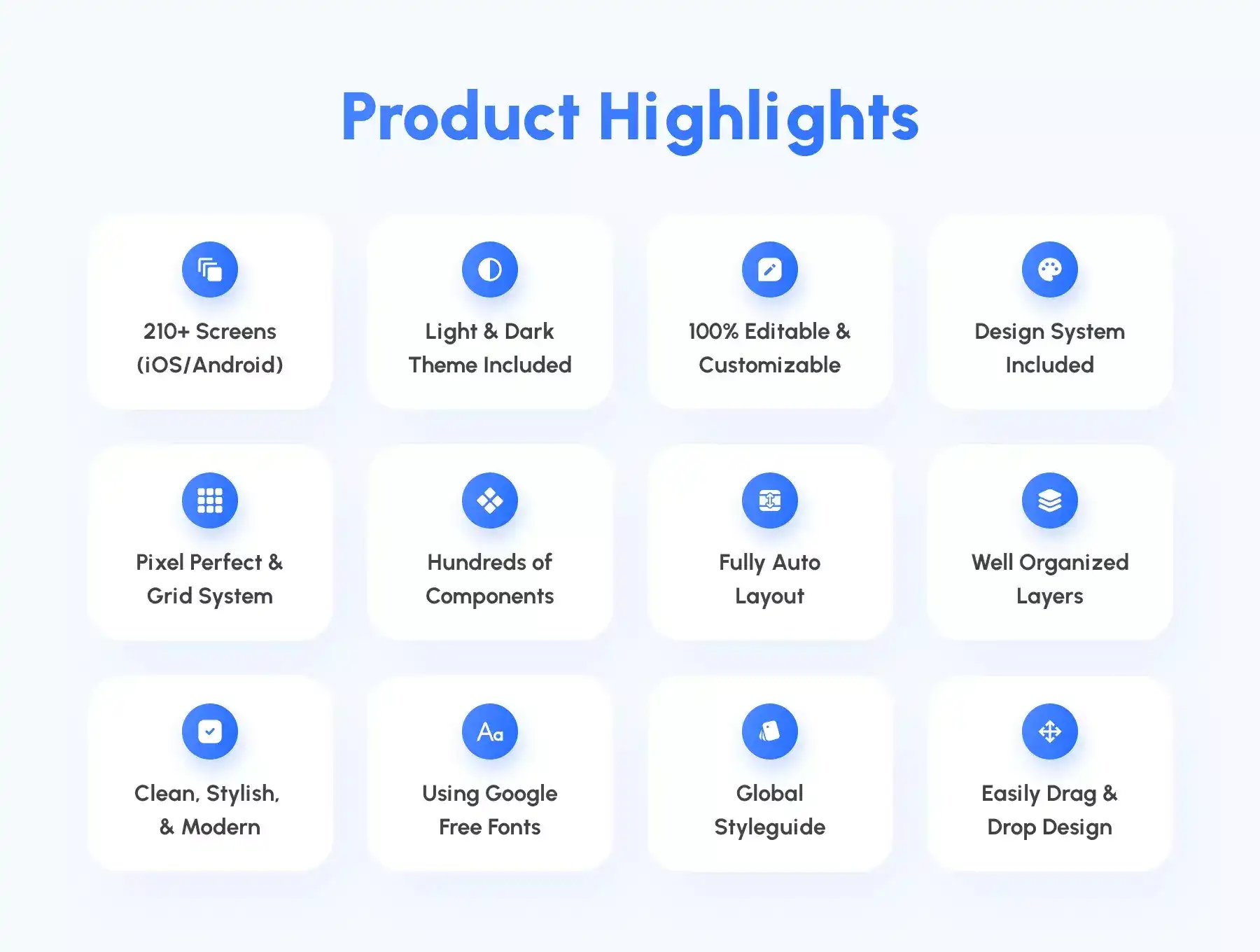 Medica support for iOS/Android (design system included) and 212 screens which is 100% editable & customizable. Designs are available in Figma. In addition, the design is also equipped with a version of Light & Dark Theme.