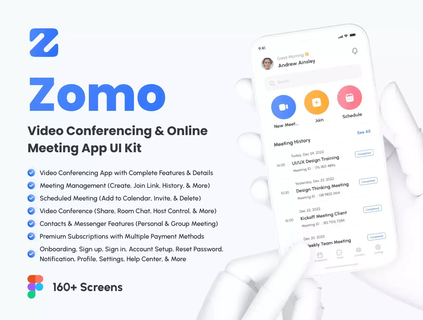 Zomo is a Premium & High Quality UI Kit with Complete Features of Video Conferencing & Online Meeting App. Zomo came with unique style and niche, you can easily edit and customize all elements with design components which can speed up design process for your projects. Everything is integrated with the design system, so you only need to change the color, logo, text, and so on in the design system, then the entire design screen will automatically change.