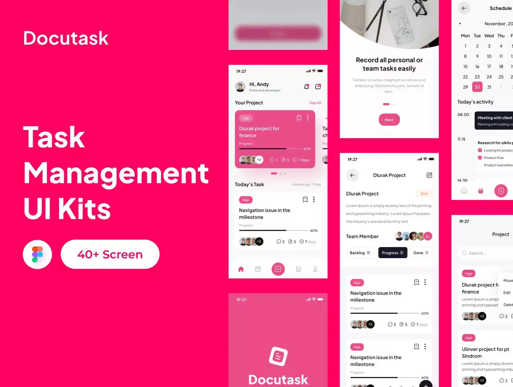 Docutask is a High Quality UI Kit of an Task Manager App UI Kits. Docutask came with a modern minimalistic design. The kit has been equipped with grouping and naming for each group so that you can edit it more easily.